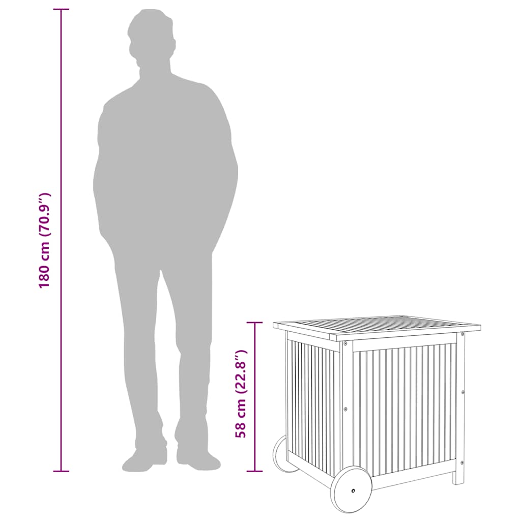 Diese Gartenbox aus Holz bietet reichlich Stauraum für Möbelkissen, Auflagen, Decken und alle anderen Sachen, die du im Außenbereich gerne griffbereit haben möchtest. Die Aufbewahrungsbox ist auch für die Verwendung im Innenbereich geeignet. Langlebiges Material: Massives Akazienholz ist ein schönes Naturmaterial. Akazienholz ist ein tropisches Hartholz, das dicht, robust und langlebig ist.Viel Stauraum: In dieser Truhe kannst du deine Sachen ganz ordentlich aufbewahren. Sie schafft Stauraum für Kissen, Auflagen, Decken, Spielzeug und andere Gegenstände.Praktisches Design: Der wasserabweisende Innenbeutel schützt deine Sachen vor Feuchtigkeit und Staub. Dank der Rollen und des Handgriffs lässt sich die Kissenbox auch einfach umher verschieben. Hinweis:Um die Lebensdauer deiner Gartenmöbel zu verlängern, empfehlen wir dir, sie mit einer wasserdichten Hülle zu schützen.Jedes Produkt wird mit einer Montageanleitung in der Verpackung für einen einfachen Zusammenbau geliefert.