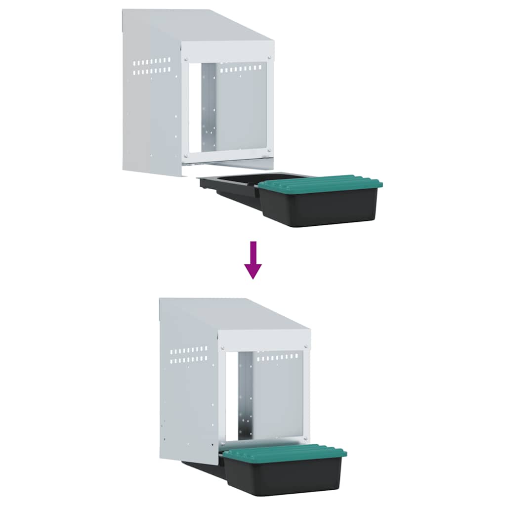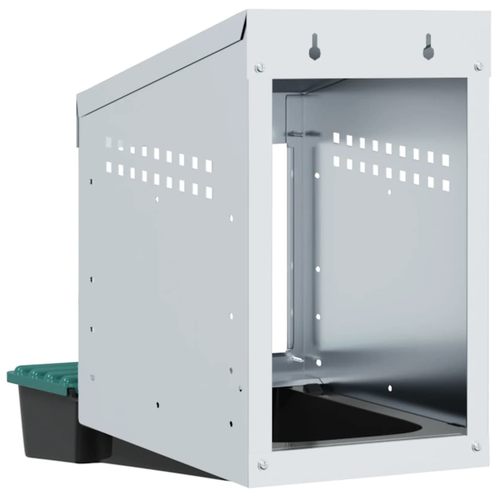 Verbessern Sie Ihre Geflügelzuchterfahrung mit dem Hühnernistkasten, der Ihren Hühnern einen privaten, komfortablen Legebereich bietet. Robustes und langlebiges Material: Dieser aus verzinktem Stahl und stabilem Polypropylen-Kunststoff gefertigte Nistkasten ist auf Langlebigkeit ausgelegt und bietet Ihren Hühnern lang anhaltende Leistung und Schutz vor rauen Außenbedingungen.Bequemes Eiersammeln: Der leicht anzuhebende Deckel und das ausrollbare Design ermöglichen ein müheloses Eiersammeln, während die Hühner ungestört bleiben. Das durchdachte Design sorgt für eine ruhige Umgebung für Ihre Hühner und macht das Eiersammeln reibungslos, problemlos und pflegeleicht.Platzsparendes Design: Die wandmontierte Konstruktion dieses Hühnernistkastens hilft, den Platz in Ihrem Stall zu optimieren und bietet Ihren Hühnern mehr Bewegungsfreiheit und gleichzeitig einen komfortablen und sicheren Platz zum Eierlegen.Durchdachte Belüftung: Der Nistkasten ist mit Lüftungsschlitzen und einer offenen Vorderseite ausgestattet, um eine optimale Luftzirkulation zu gewährleisten. So bleibt eine trockene, geruchsfreie und komfortable Umgebung für Ihre Hühner erhalten, während Feuchtigkeits- und Geruchsbildung verhindert wird.Einfache Montage: Der Nistkasten ist einfach zu montieren, da er alle notwendigen Montagezubehörteile enthält. Er kann an Oberflächen wie Betonwänden, Ziegelwänden und Gipskartonplatten montiert werden. Befolgen Sie die beiliegenden Anweisungen für eine einfache Montage. Gut zu wissen:Um Kratzer zu vermeiden, wird empfohlen, während der Montage Handschuhe zu tragen.