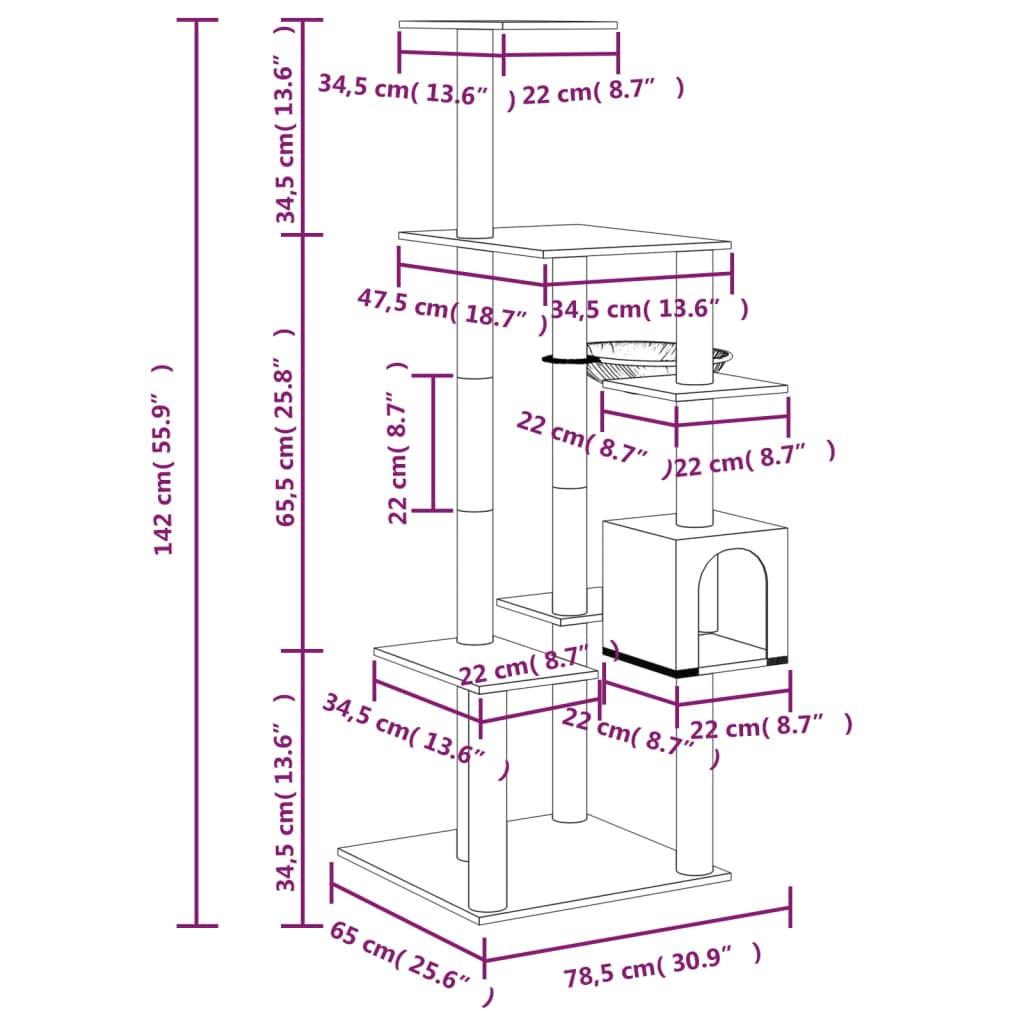 Mit diesem Kratzbaum genießen Ihre pelzigen Freunde einen Hauch Luxus! Ihre Katzen werde es genießen, daran Ihre Krallen zu schärfen, zu klettern, sich zu verstecken und sich auszuruhen. Alles-in-einem-Katzenturm: Der mehrstufige Katzenturm bietet deiner Katze einen unterhaltsamen und kompakten Platz zum Spielen, Bewegen und Schlafen. Er besteht aus einem warmen Häuschen, Korb und Plattformen.Bequemer Plüsch: Dank des hautfreundlichen und flauschigen Plüschbezugs genießen deine Katzenfreunde höchsten Komfort beim Spielen.Strapazierfähiges Sisalseil: Die Säulen dieses Kratzbaums sind mit natürlichen Sisalseilen umwickelt, sodass deine Katzen ihre Kratzinstinkte auf gesunde Weise befriedigen können. Hinweis:Jedes Produkt wird mit einer Montageanleitung in der Verpackung für eine einfache Montage geliefert.