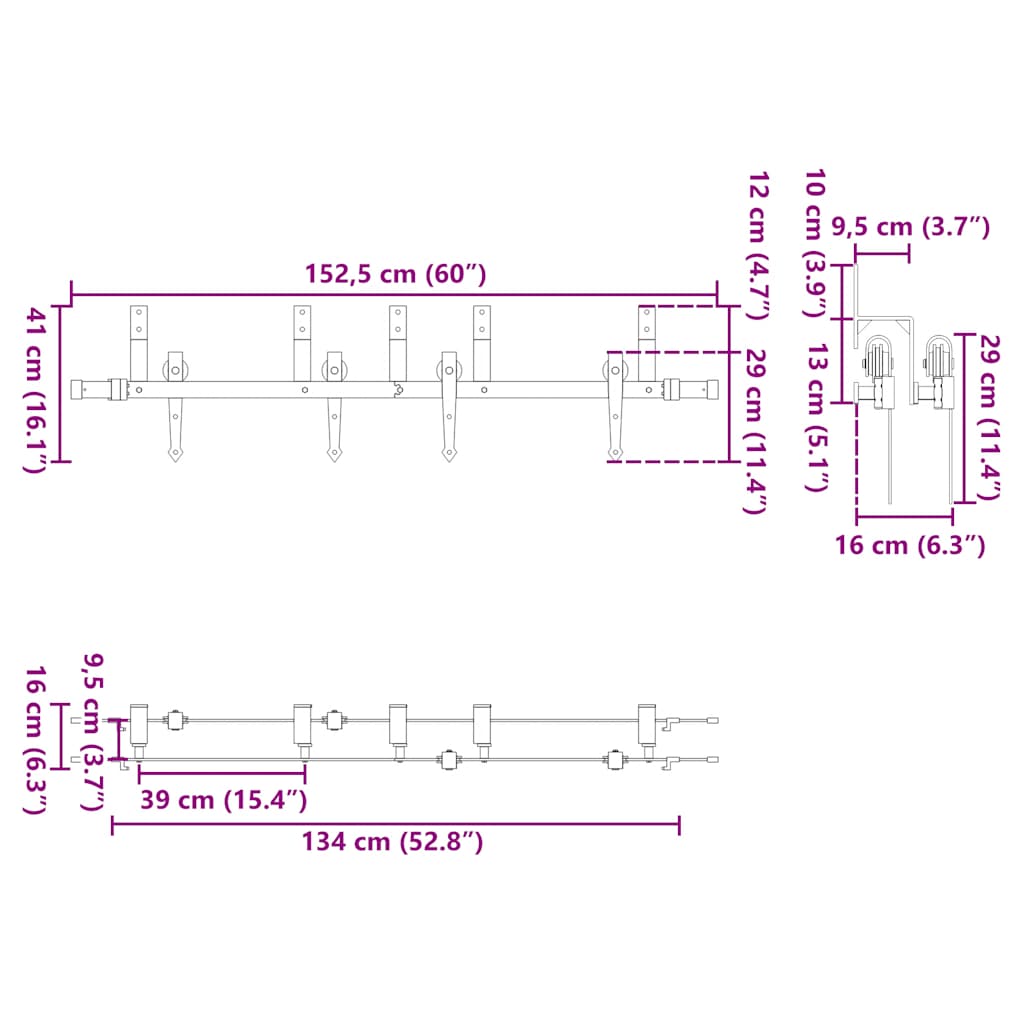 - Gesamtlänge der Gleitschiene: 152,5 cm