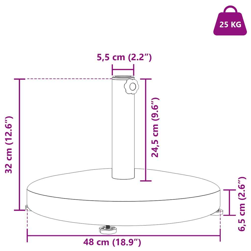 Diese Sonnenschirmbasis ist eine tolle Ergänzung für jeden Garten oder jede Terrasse. Sie bietet Stabilität für deinen Sonnenschirm und verbessert das Aussehen deines Außenbereichs. Das moderne Design mit klaren Linien passt gut zu verschiedenen Außenbereichen und bietet Stil und Funktion. Die schlanke, runde Form gibt deinem Platz eine elegante Note – perfekt für Patios, Decks und Rasen. Materialmerkmale: Die Stahlkonstruktion ist stark und stabil und hält allen Wetterbedingungen stand. Dank der UV-Beständigkeit bleibt die Optik langlebig, auch bei direkter Sonneneinstrahlung. Komponenten: Die Basis wurde für Sonnenschirme entworfen und bietet einen sicheren Halt, damit sie nicht umkippt. So kannst du an windigen Tagen unbesorgt im Garten entspannen. Funktionales Design: Die Basis fügt sich durch ihr modernes Design nahtlos in jeden Außenbereich ein. Klare Linien und die runde Form sorgen dafür, dass sie funktional und stilvoll ist – eine perfekte Ergänzung für jedes Garten- oder Terrassensetup. Empfohlene Verwendung: Ideal für Sommeraktivitäten im Freien, sorgt die robuste Basis für Stabilität, während du Gäste unterhältst oder einen entspannten Nachmittag im Garten verbringst. Vielseitig einsetzbar für verschiedene Anlässe. Pflege und Wartung: Halte die Basis in Schuss, indem du regelmäßig ein trockenes Tuch benutzt, um Staub zu entfernen. So ergänzt sie das Gesamtbild deines Außenbereichs die ganze Saison über.