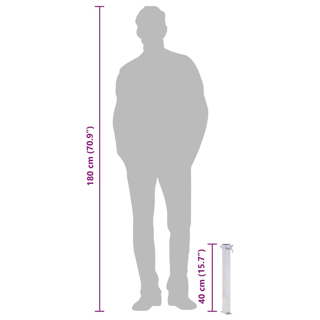Diese Wasserzapfsäule ist zusammen mit dem Wasserhahn eine großartige Ergänzung für deinen Garten und macht das Gießen, Reinigen oder Bewässern im Freien noch bequemer. Langlebiges Material: Die Garten-Wassersäule ist aus rostfreiem Stahl gefertigt, der robust und langlebig ist und eine lange Lebensdauer hat. Zudem ist es sehr korrosions- und rostbeständig.Praktischer Haken: Die Wasserzapfstelle ist mit einem Haken zum Aufhängen des Schlauchs ausgestattet, damit sich der Gartenschlauch nicht verknickt oder verwickelt. Er ist hoch genug, um den Schlauch möglichst weit vom Boden fernzuhalten, damit dein Garten sauber und aufgeräumt bleibt.Stabiler Sockel: Der Sockel aus rostfreiem Stahl verleiht der Wasserzapfsäule Robustheit und Festigkeit. Für zusätzliche Stabilität kannst du die Dehnschrauben zur Befestigung der Wassersäule im Boden verwenden.Vielseitig einsetzbar: Der Wasserschlauch kann an den unteren Anschluss angeschlossen werden. Der Gartenhahn eignet sich für die Gartenbewässerung, zum Autowaschen, zum Gießen der Blumen, zum Waschen von Haustieren und so weiter. Gut zu wissen:Die Dehnschraube ist nicht im Lieferumfang enthalten.