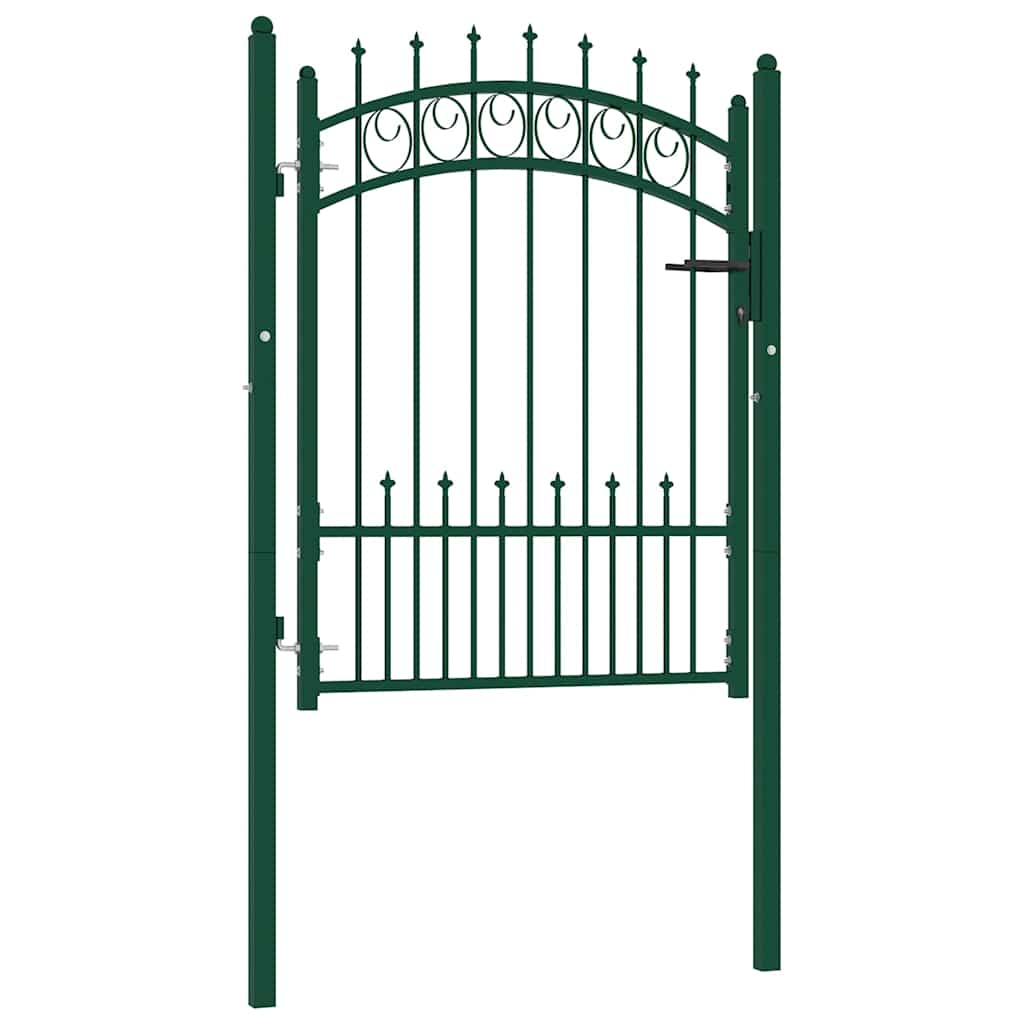 Dieses Zauntor bildet eine praktische Sicherheitsbarriere für Ihren Garten, Ihren Innenhof oder Ihre Terrasse. Das aus robustem Stahl gefertigte Zauntor hat eine robuste Konstruktion und wurde gegen Rost und Korrosion pulverbeschichtet. Mit den vertikalen Stäben mit Spitzen und der starken horizontalen Strebe als Verstärkung bietet dieses Gartentor ein hohes Maß an Sicherheit. Das gewölbte Oberteil trägt zu seiner Eleganz bei. Es wird mit zwei stabilen Pfosten und robusten Scharnieren für eine einfache Montage geliefert, und ein Schließsystem mit drei passenden Schlüsseln ist ebenfalls im Lieferumfang enthalten.