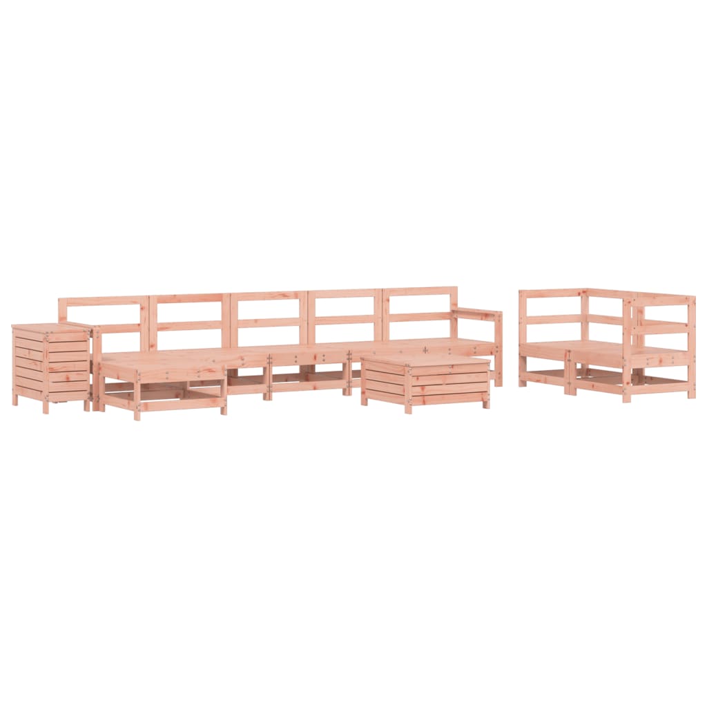 Dieses Garten-Lounge-Set aus Holz mit Latten-Design ist eine großartige Bereicherung für deinen Garten, deine Terrasse oder deinen Balkon, um eine gemütliche Zeit mit der Familie oder Freunden zu verbringen. Robustes und langlebiges Material: Douglasienholz ist für seine Festigkeit und Haltbarkeit bekannt. Seine satte rotbraune Farbe und seine einzigartige Maserung verleihen ihm eine warme und natürliche Optik. Dank seiner ausgezeichneten Stabilität und Witterungsbeständigkeit eignet es sich ideal für die Herstellung von Innen- und Außenmöbeln. Gute Belüftung und Verhinderung von Ansammlungen: Das Latten-Design sorgt für eine optimale Luftzirkulation und verhindert effektiv, dass sich Wasser ansammelt, wodurch die Sitzfläche stets bequem trocken bleibt. Vielseitig einsetzbar: Der Gartenhocker lässt sich als Sitzgelegenheit oder zum Ausruhen der Füße verwenden, kann aber auch als Couchtisch für Getränke, Snacks oder Dekorationen dienen. Praktischer Tisch: Der Gartentisch bietet einen praktischen Platz, um verschiedene wichtige Sachen griffbereit zu verstauen. Modulares Design: Dank des modularen Designs lassen sich die Gartenmöbel völlig flexibel und einfach umstellen, um deinen Außenbereich ganz individuell zu gestalten. Gut zu wissen:Wir empfehlen dir, deine Gartenmöbel mit einer wasserdichten Hülle zu schützen, um lange Zeit eine ansprechende Optik aufzuweisen.