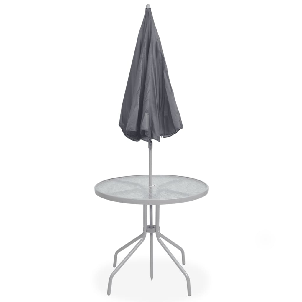 Dieses 6-teilige Gartenmöbel-Set ist die perfekte Wahl zum Entspannen oder Essen im Garten. Es ist sowohl praktisch als auch dekorativ. Die komfortablen Stühle sind aus hochwertigem, pulverbeschichtetem Stahl gefertigt. Dank der beständigen Sitzflächen und Rückenlehnen aus Textilene-Gewebe sind unsere Stühle sehr komfortabel und witterungsbeständig. Der Tisch hat eine großzügige, stabile und leicht zu reinigende Hartglasplatte mit einer dekorativen Wasserwellenstruktur. Der mitgelieferte Regenschirm kann Sie vor der Sonne schützen. Die Stühle sind stapelbar, um bei Nichtgebrauch Platz zu sparen. Die Montage ist einfach. Lieferung umfasst 4 Stühle, 1 Tisch und 1 Schirm.