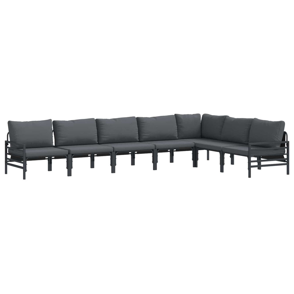 Dieses moderne Garten-Sofa-Set macht jeden Außenbereich zum Hingucker. Das cleane Design und die klaren Linien passen perfekt in Gärten und auf Terrassen und sorgen für gemütlichen Komfort an sonnigen Tagen. Ideal für alle, die einen modernen Stil mögen, ist dieses Set die perfekte Wahl zum Relaxen oder Feiern mit Freunden. Robuster Stahlrahmen Aus pulverbeschichtetem Stahl gemacht, trotzt dieses Sofa-Set allen Wetterbedingungen, ohne seinen coolen Look zu verlieren. Der zusätzliche Schutz der Pulverbeschichtung sorgt für eine lange Lebensdauer, selbst bei schlechtem Wetter. Die stabile Bauweise gibt dir Sicherheit und macht es zu einer langlebigen Wahl für deinen Garten. Komfortable Kissen Die mit Schaumstoff gefüllten Polyesterkissen bieten dir mega Komfort. Das atmungsaktive Design sorgt dafür, dass die Sitze auch an heißen Tagen frisch bleiben. Reißverschlussverschlüsse erleichtern das Abziehen und Reinigen der Kissen. Stylische Armlehnen Die quadratischen Armlehnen aus Stahl sind nicht nur schick, sondern auch praktisch. Ihre klaren geometrischen Linien machen das Design modern und bieten einen gemütlichen Platz, um während des Entspannens die Arme abzulegen. Vielseitigkeit im Freien Dieses Set ist perfekt für draußen und eignet sich super für Gärten, Terrassen oder entspannte Stunden am Pool. Der schnelltrocknende Stoff macht es dir leicht, auch bei Frühlingsregen oder Sommerwind entspannt zu bleiben. Einfache Pflege Halte das Sofa-Set in Topform, indem du es abdeckst, wenn du es nicht benutzt. Mit dieser einfachen Pflege bleibt dein Möbel immer schön und du kannst es lange genießen.