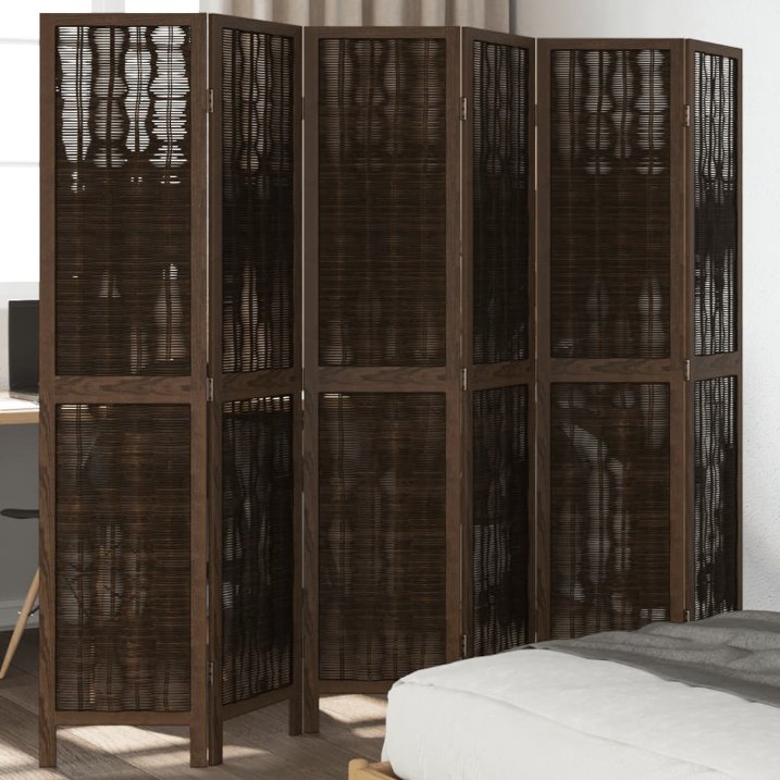 Verleihe deinem Wohnraum eine auffällige dekorative Note mit diesem bezaubernden Raumteiler. Langlebig und leicht zu reinigen: Der Paravent ist aus Weidenzweigen gefertigt, sodass er sich einfach reinigen lässt und auf eine lange Lebensdauer ausgelegt ist.Robuster Rahmen: Der Rahmen aus massivem Paulownia-Holz sorgt für Robustheit und Stabilität. Paulownia-Massivholz ist ein wunderschönes Naturmaterial. Paulowniaholz ist widerstandsfähig gegen Schädlingsbefall und Verrottung.Flexibel und einfach faltbar: Die Paravent-Teile sind jeweils durch 3 Metallscharniere miteinander verbunden. Die oberen und unteren Paneele dieser spanischen Wand sind durch verborgene 2-in-1-Scharniere verbunden. Der Raumtrenner kann also leicht bis zu einem gewissen Grad zusammengeklappt werden; dadurch spart er bei Nichtgebrauch Platz.Vielseitig einsetzbar: Die Trennwand eignet sich hervorragend zur Schaffung von Privatsphäre im Schlafzimmer, Wohnzimmer, Büro und anderen Räumen. Du kannst das Paravent auch vor ein Fenster stellen, um intensives Sonnenlicht abzuschirmen.Verbrannter Optik: Mit seinem verbrannten Look verleiht dieser klappbare Raumteiler jedem Raum Charakter. Achtung:Nur für den Innenbereich!