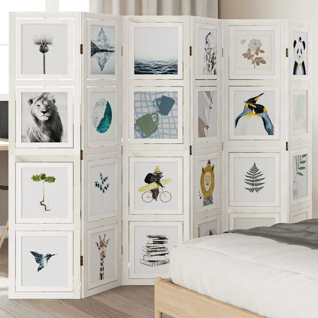 Verleihe deinem Wohnraum eine auffällige dekorative Note mit diesem bezaubernden Raumteiler. Langlebig und leicht zu reinigen: Der Sichtschutz ist aus massivem Paulowniaholz gefertigt, wodurch er leicht zu reinigen und strapazierfähig ist. Der Rahmen aus Paulownia-Massivholz sorgt für Robustheit und Stabilität. Paulowniaholz ist ein wunderschönes Naturmaterial. Dieses Holz ist sehr widerstandsfähig gegen Schädlingsbefall und Verrottung.Flexibel und einfach faltbar: Die Paravent-Teile sind jeweils durch 3 Metallscharniere miteinander verbunden. Die oberen und unteren Paneele dieser spanischen Wand sind durch verborgene 2-in-1-Scharniere verbunden. Der Raumtrenner kann also leicht bis zu einem gewissen Grad zusammengeklappt werden; dadurch spart er bei Nichtgebrauch Platz.Attraktives Design: Jeder Fotorahmen kann vertikal gedreht werden, sodass du deine Lieblingsfotos in jeder beliebigen Position anordnen und zum Highlight des Raumes machen kannst.Vielseitig einsetzbar: Die Trennwand eignet sich hervorragend zur Schaffung von Privatsphäre im Schlafzimmer, Wohnzimmer, Büro und anderen Räumen. Du kannst das Paravent auch vor ein Fenster stellen, um intensives Sonnenlicht abzuschirmen. Achtung:Nur für den Innenbereich! Gut zu wissen:Jeder drehbare Rahmen verfügt über ein offenes Design und wird ohne vorgegebene Dekorationsbilder und Glas geliefert. Sie können ihn individuell gestalten, indem Sie eigene Fotos über die seitliche Öffnung in den Rahmen einsetzen und so einen einzigartigen, personalisierten Look schaffen.