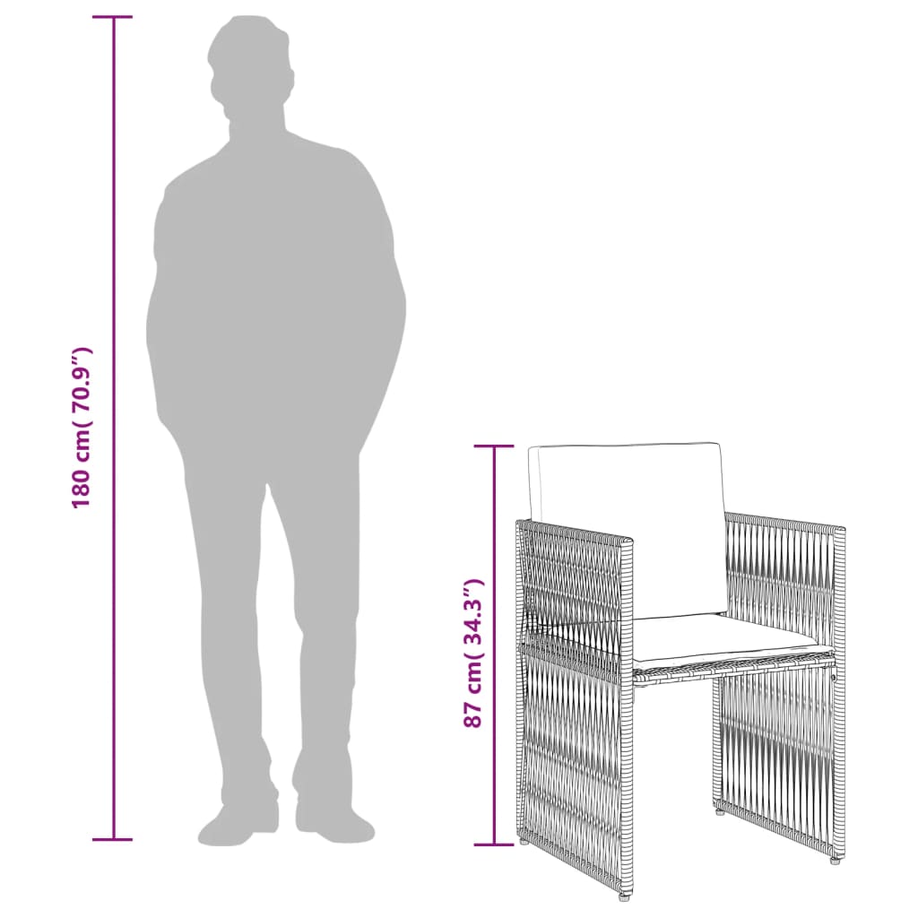 vidaXL 7-tlg. Garten-Essgruppe mit Kissen Schwarz Poly Rattan
