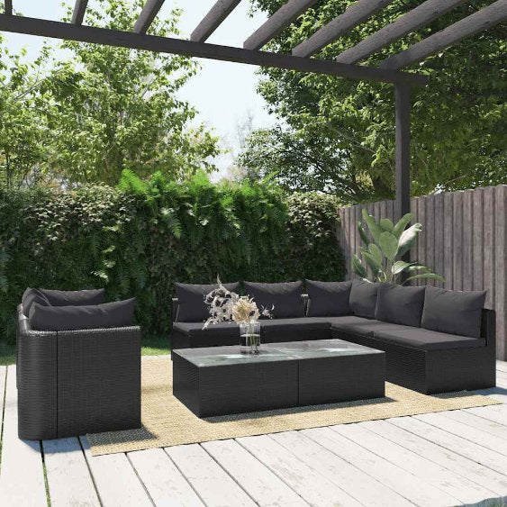 - Farbe: Schwarzes Poly Rattan + schwarze Polsterung