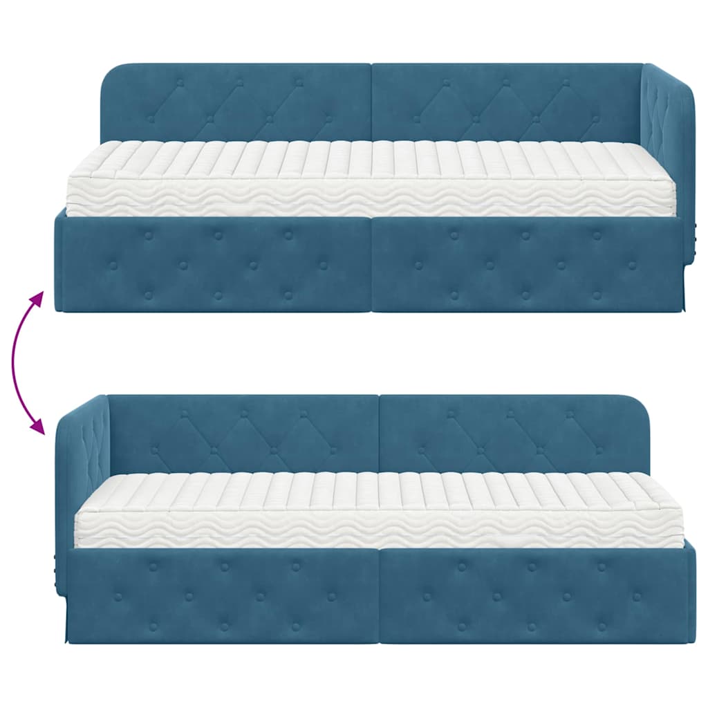 vidaXL Eckbettgestell mit Matratze mit Kopfteil Blau 80 x 200 cm Samt