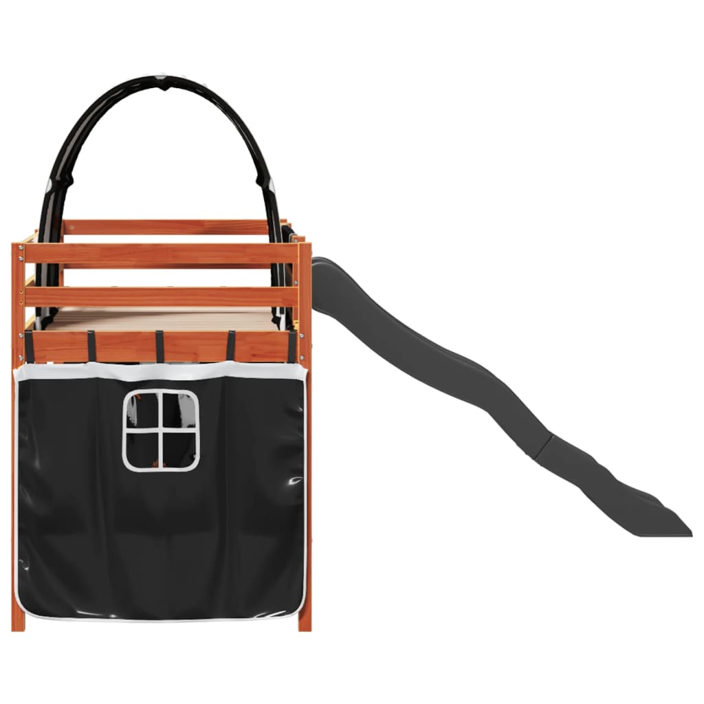 Dieses Hochbett für Kinder ist aus Kiefern-Massivholz gefertigt und ist sowohl zur Unterhaltung als auch zur Raumoptimierung konzipiert worden. Stabiles und langlebiges Gestell: Massives Kiefernholz ist für seine Stärke und Haltbarkeit bekannt. Seine gerade Maserung und die charakteristischen Aststellen tragen zu seinem rustikalen Charme bei.Großer Spaß: Kinder können die Vorhänge und den Tunnel mit dem Hochbett kombinieren, um einen geheimen Rückzugsort zu schaffen. Das Kinderbett wird für viel Spaß beim Schlafengehen sorgen und der neue Mittelpunkt des Kinderzimmers sein!Rausfallschutz: Das Hochbett für Kinder ist an allen 4 Seiten mit Rausfallschutz ausgestattet, damit die Kleinen ohne Angst vor dem Herausfallen schlafen können.Praktische Leiter und Rutsche: Dieses Hochbett für Kinder verfügt über eine lustige Rutsche, die Freude bereitet und das Zimmer in einen Indoor-Spielplatz verwandelt. Die Kombination aus Kletterleiter und Rutsche macht das Schlafengehen lustiger und interessanter. Lattenrost für optimale Unterstützung: Der Bettrahmen ist mit einem Lattenrost ausgestattet, der deine Matratze stützt und atmungsaktiv hält. Gut zu wissen:Bei diesem Bett ist keine Matratze im Lieferumfang enthalten. Wir bieten jedoch eine große Auswahl an Matratzen an. Du kannst in unserem Shop nach einer passenden Matratze suchen. Achtung:Um ein Umkippen zu vermeiden, sollte dieses Produkt mit der mitgelieferten Wandhalterung gesichert werden.
