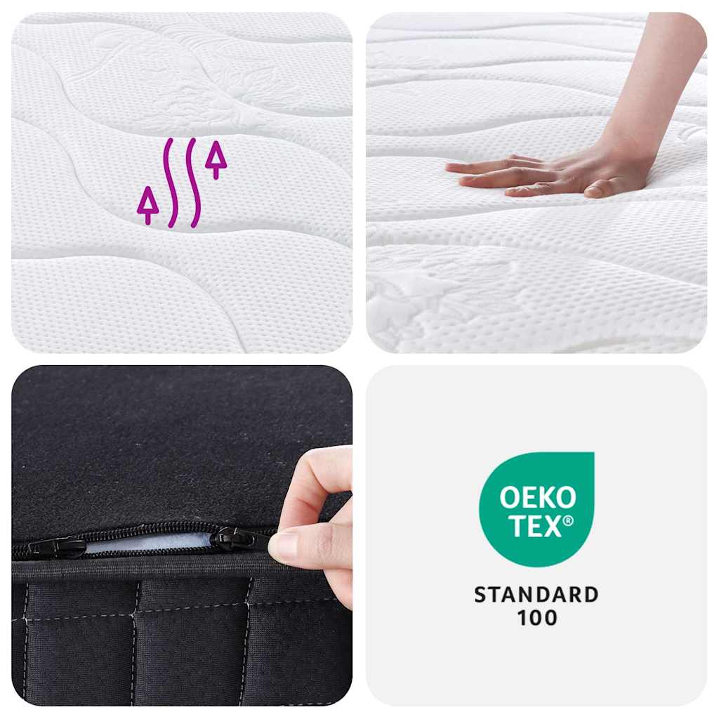 Diese Bonnell-Federkern-Matratze bietet dir ein angenehmes Gefühl und ein komfortables Schlaferlebnis. Haltbarkeit und Langlebigkeit: Der Stoff zeichnet sich durch einen schlichten und sauberen Look aus und ist gleichzeitig atmungsaktiv, hautfreundlich und langlebig. Ausgezeichnete Unterstützung: Das Bonnell-Federsystem besteht aus miteinander verbundenen Stahlspiralen in Sanduhr-Form, die fest und stabil sind, um besten Halt und Langlebigkeit zu bieten. Erhöhter Komfort: Die Federkernmatratze besteht aus mehreren Schichten, darunter eine Schaumstoffschicht, eine Isolierschicht und eine Federschicht. Diese Kombination bietet ein weiches bis mittleres Liegegefühl und einen hohen Liegekomfort in allen Schlafpositionen. Darüber hinaus absorbiert die Matratze effektiv Geräusche und Vibrationen, die durch das Hin- und Herdrehen verursacht werden, und sorgt so für einen ruhigen und ungestörten Schlaf. Einfach zu benutzen: Die Matratzen-Handzieher bietet eine sichere und einfache Möglichkeit, eine schwere und sperrige Matratze anzuheben und zu bewegen. Außerdem verfügt die Federkernmatratze über einen langen Reißverschluss, mit dem sich der Bezug zur Reinigung leicht abnehmen lässt. Gut zu wissen:Diese Matratze besteht aus zwei einzelnen Matratzenkernen, die zu einer einzigen, einheitlichen Matratze kombiniert werden.Der Bezug der Matratze ist bei bis zu 40 °C waschbar. Es ist zu beachten, dass er nicht häufig gewaschen werden sollte. Die Matratze ist komprimiert und aufgerollt in einem Karton verpackt, so dass du sie leicht bewegen und in deinem Zimmer aufstellen kannst.