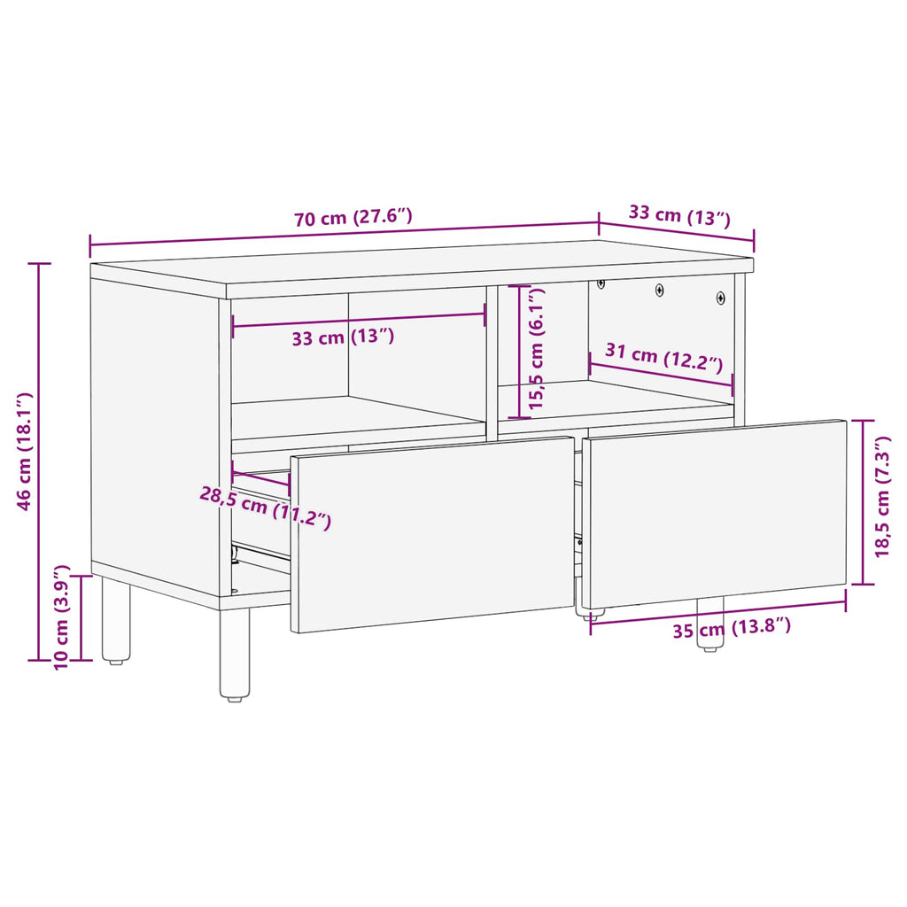 - Gesamtabmessungen: 70 x 33,5 x 46 cm (L x B x H)