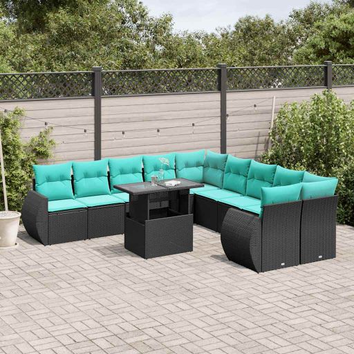 - Material: PE-Rattan, pulverbeschichteter Stahl, gehärtetes Glas