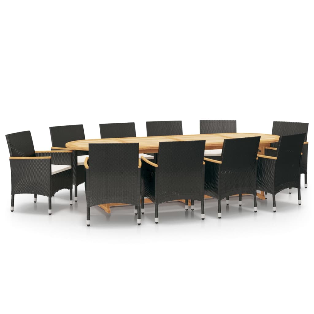 vidaXL 11-tlg. Garten-Essgruppe mit Kissen Schwarz