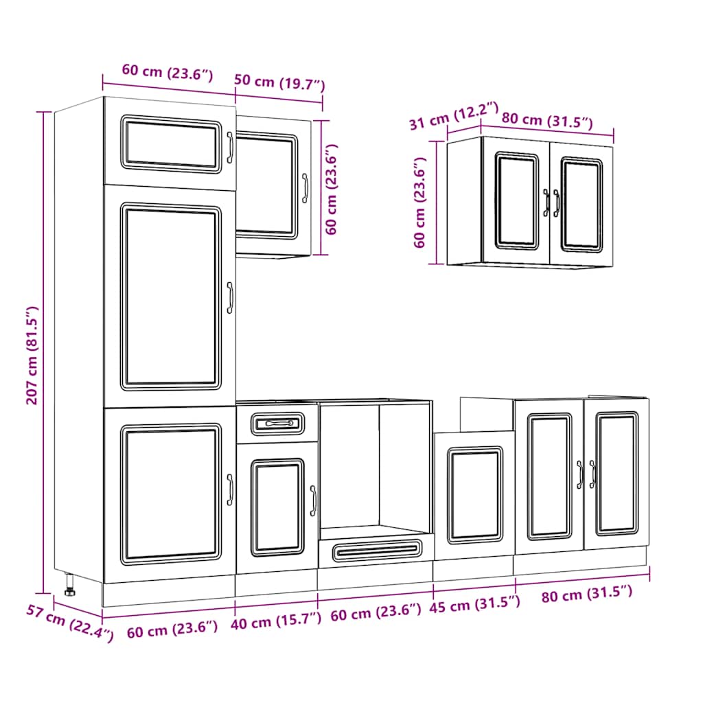 - 1 x Küchenschrank: 60 x 57 x 207 cm (B x T x H)