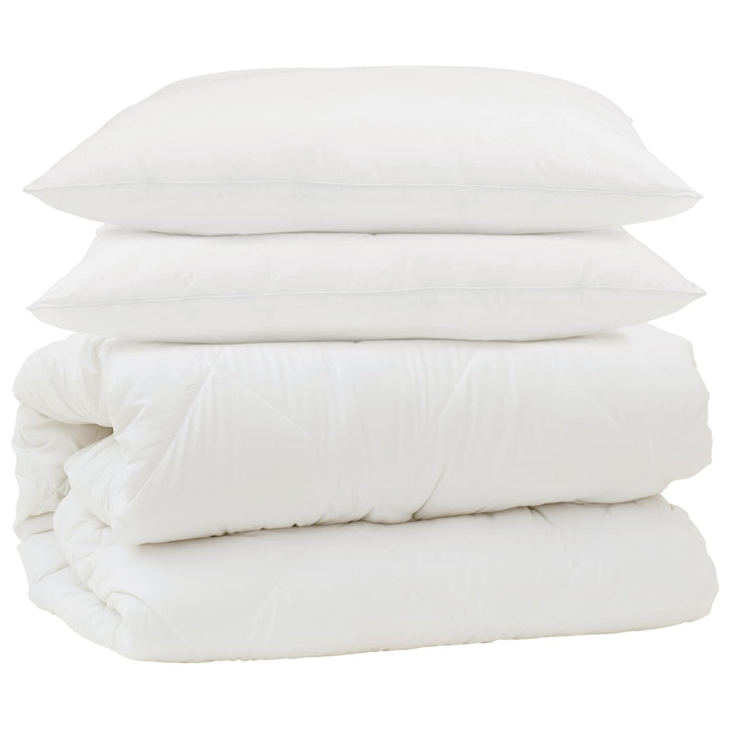Erlebe ultimativen Komfort mit dem Mikrofaser-Duvet-Set. Es ist die perfekte Mischung aus modernem Design und Funktionalität. Diese Bettwäsche hat einen eleganten Look und bietet hervorragende Wärme – ideal, um jeden Raum aufzuwerten. Die schlichte Eleganz und klaren Linien passen zu verschiedenen Einrichtungsstilen und bieten bequemen Komfort für alle, die schlafen. Das Set wird mit einem Duvet und passenden Kissen geliefert, die dafür gemacht sind, kuschelige Wärme an kalten Winternächten zu spenden. Genieß diese schicke Bettwäsche, die dein Schlafzimmer in ein ruhiges Refugium verwandelt, das jederzeit zur Entspannung einlädt. Hochwertige Mikrofaser und Daunen: Das Duvet-Set besteht aus feiner Mikrofaser und Daunen, die ein luxuriöses Gefühl geben. Mikrofaser ist langlebig und hautfreundlich, sodass sie jede Nacht ein warmes und gleichzeitig atmungsaktives Erlebnis garantiert. Diese Kombination sorgt für Komfort und macht das Set perfekt für entspannende Winternächte. Box-Stepp-Design: Mit seiner gesteppten Textur und der Box-Steppung sorgt dieses Design für eine gleichmäßige Verteilung der Füllung. So bleiben kalte Stellen fern und die Form wird gut gehalten. Das Quilting hebt die Stabilität hervor und bringt stilvolle Details in dein Schlafzimmer. Extra warm und leicht: Das Duvet wurde so entwickelt, dass es maximale Wärme ohne schweres Gewicht bietet. Es hat eine leichte Polyesterfüllung, die die Handhabung erleichtert. So ist es ideal für alle, die an kalten Winterabenden Komfort suchen, aber keine schwere Decke wollen. Moderner, minimalistischer Stil: Dieses Set bringt modernes, minimalistisches Design mit klaren Linien und sanften Farben ins Schlafzimmer. Es schafft eine beruhigende Atmosphäre und passt perfekt in jeden Einrichtungsstil. Die schlichte Eleganz sorgt für einen erholsamen Schlaf oder einfach nur zum Entspannen nach einem langen Tag. Maschinenwaschbare Pflege: Die Pflege dieses Duvet-Sets ist ganz einfach. Man kann es bei maximal 30°C in der Maschine waschen. Damit bleibt deine Bettwäsche frisch, ohne dass du viel Aufwand hast, und der Komfort und die Optik bleiben unberührt.