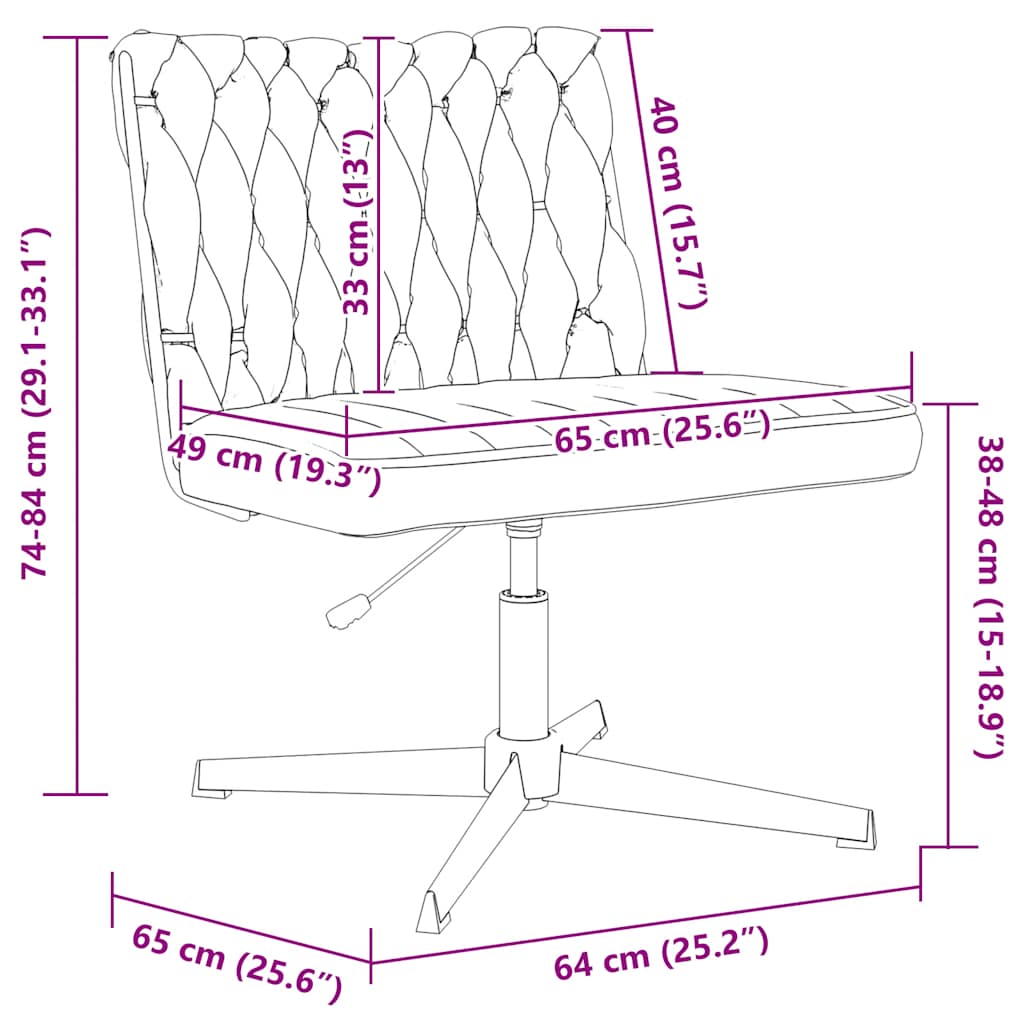 - Gesamtabmessungen: 65 x 65 x (74 - 84) cm (B x T x H)