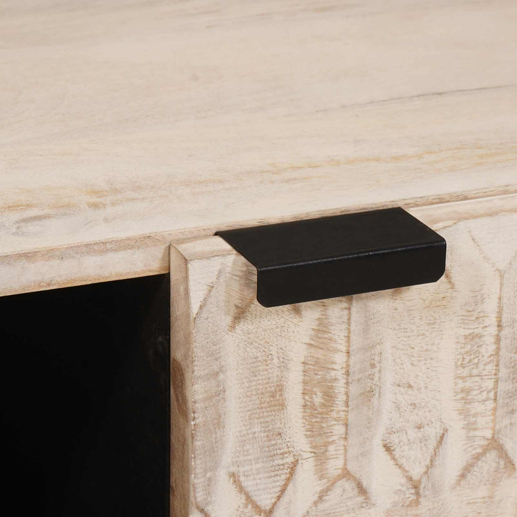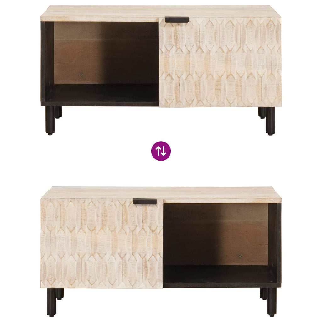 Dieser stylische und praktische Tisch ist die perfekte Mischung aus Aussehen und Funktionalität. Er wurde für moderne Wohnzimmer designt und dient sowohl als Hingucker als auch als Ablage für Getränke, Bücher und Deko. Mit seiner schlanken, rechteckigen Form bringt er Eleganz und sorgt für Balance in deinem Raum. Das massive Mangoholz gibt dem Tisch nicht nur Stabilität, sondern bringt auch einen Hauch von natürlichem Flair mit, der gut zu vielen Einrichtungsstilen passt. Massivholz Mangokonstruktion bietet dir unglaubliche Haltbarkeit und eine warme Atmosphäre in deinem Raum und sorgt dafür, dass er lange hält und super aussieht. Die schöne Textur und Maserung des Holzes geben deinem Zuhause Charme. Rechteckige Form ist perfekt, um deinem Sitzbereich Struktur zu geben. Die Maße passen super zu anderen Möbelstücken und bieten viel Platz für deine Essentials und Deko. Viel Stauraum mit Scharniertüren, die ein großzügiges Fach für Bücher, Zeitschriften oder andere Dinge öffnen. So bleibt alles ordentlich und aufgeräumt. Ansprechende Rückseite sieht von allen Seiten gut aus. Die schicke, fertige Rückseite sorgt dafür, dass es auch freistehend toll aussieht. Einfache Pflege erfordert nur ein trockenes Tuch zur Reinigung, um den natürlichen Look des Tisches zu erhalten. Vermeide aggressive Chemikalien, damit die lebendige Oberfläche auch über die Jahre hübsch bleibt und dir lange Freude bereitet.
