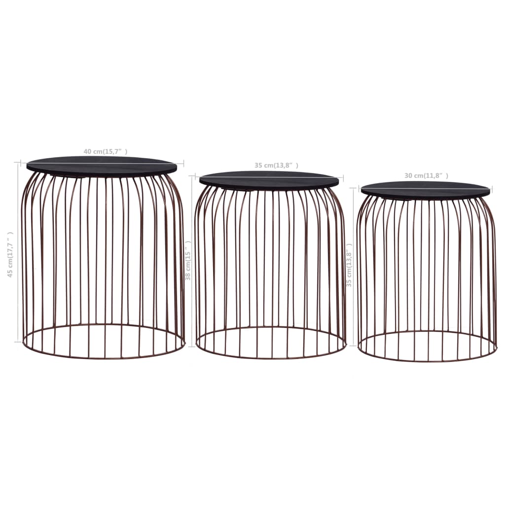 Dieses Set aus 3 Couchtischen strahlt einen Vintage-Charme aus und wird eine unverwechselbare Ergänzung zu Ihrer Wohnungseinrichtung sein. Sie können die Tische auch als Ablagekörbe, Ablagetische, Beistelltische usw. verwenden. Die Tischplatte aus Massivholz bietet eine glatte und stabile Oberfläche, auf der Sie Getränke, Vasen oder andere Dekorationsartikel platzieren können. Durch das Abnehmen der Tischplatte verwandeln Sie den Beistelltisch in einen Ablagekorb. Außerdem kann der kleinere Tisch platzsparend in den größeren gestellt werden. Der stabile, pulverbeschichtete Metallrahmen trägt zur robusten Konstruktion und zur industriellen Optik bei.