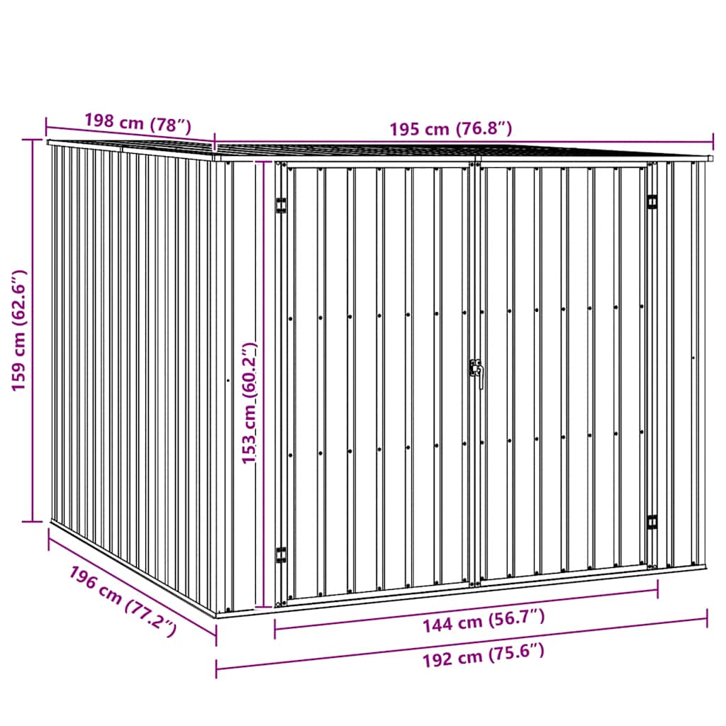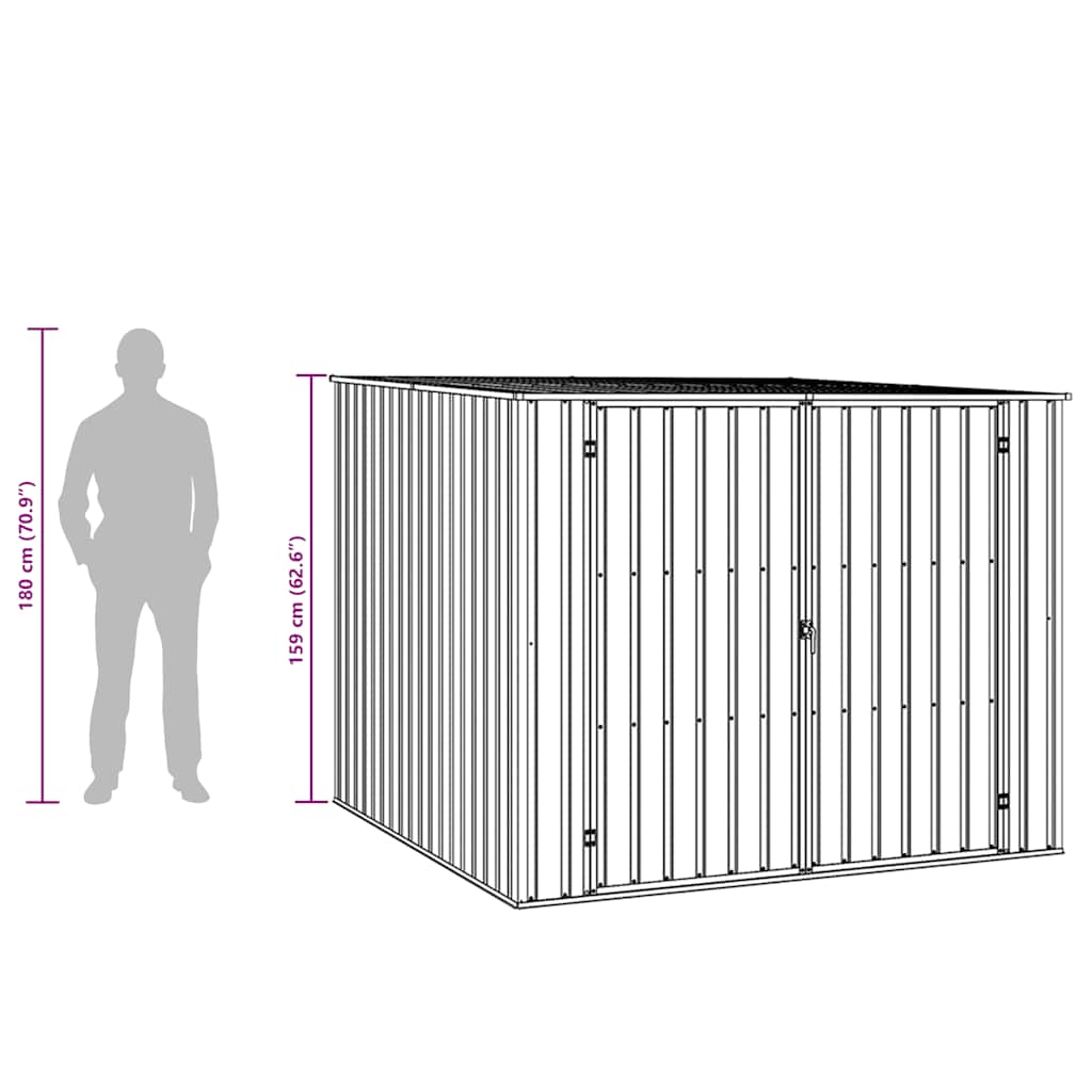 Dieses Gartenhaus eignet sich ideal zur Aufbewahrung verschiedenster Gegenstände wie Werkzeuge, Gartenmöbel, Gartengeräte usw. Es bietet Schutz vor Schmutz, Staub, starkem Wind und rauem Wetter. Dieses Gartenhaus aus verzinktem Stahl ist äußerst wartungsarm und langlebig. Die Doppeltüren an der Vorderseite ermöglichen ein einfaches Ein- und Aussteigen. Dank des geneigten Dachs läuft Regenwasser automatisch ab. Gut zu wissen:Um Schäden durch starken Schnee zu vermeiden, empfehlen wir, das Dach im Winter regelmäßig zu räumen.