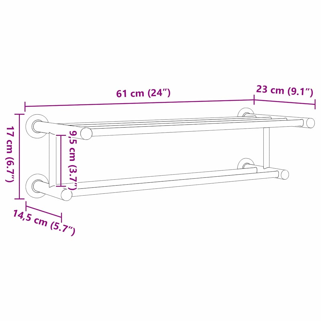 Dieser schicke Handtuchhalter vereint modernes Design mit einer rechteckigen Form und glatter Oberfläche, die jedes Badezimmer aufwertet. Mit seinem simplen und klaren Look ist er perfekt für minimalistische Räume und sorgt dafür, dass deine Handtücher ordentlich hängen und leicht erreichbar sind. Aus robustem Edelstahl gefertigt, zieht er Hausbesitzer an, die praktische Lösungen in schicker Ausführung suchen. Hochwertiger Edelstahl: Der Handtuchhalter ist aus rostbeständigem Edelstahl gemacht. Das Material sorgt für einen tollen Glanz und hält auch in feuchten Badezimmern lange durch. Die stabile Bauweise macht die Reinigung ganz stressfrei. Cooles Design: Minimalistisches Design, das Funktionalität und schöne Form vereint. Mit den Maßen 61 x 23 x 17 cm passt er perfekt in jedes Badezimmer. Ideal für alle, die einen organisierten, stylischen Raum schätzen. Super einfache Montage: Der Handtuchhalter lässt sich schnell und unkompliziert mit einem Schraubendreher montieren. Jeder, egal ob Mieter oder Eigentümer, kann ihn ohne Probleme aufhängen und damit das Badezimmer im Handumdrehen aufwerten. Funktionalität trifft Stil: Der Handtuchhalter kombiniert Nützlichkeit mit schickem Design und hat eine glatte Oberfläche, die Wasser und Abnutzung standhält. Sein einfaches, effektives Design bringt mühelos Eleganz in jeden Raum. Pflege & Langlebigkeit: Um das schicke Aussehen zu erhalten, halte den Handtuchhalter trocken und hänge Handtücher 24 Stunden nach der Montage auf. Vermeide scharfe Chemikalien und Scheuermittel für eine mühelose Reinigung.