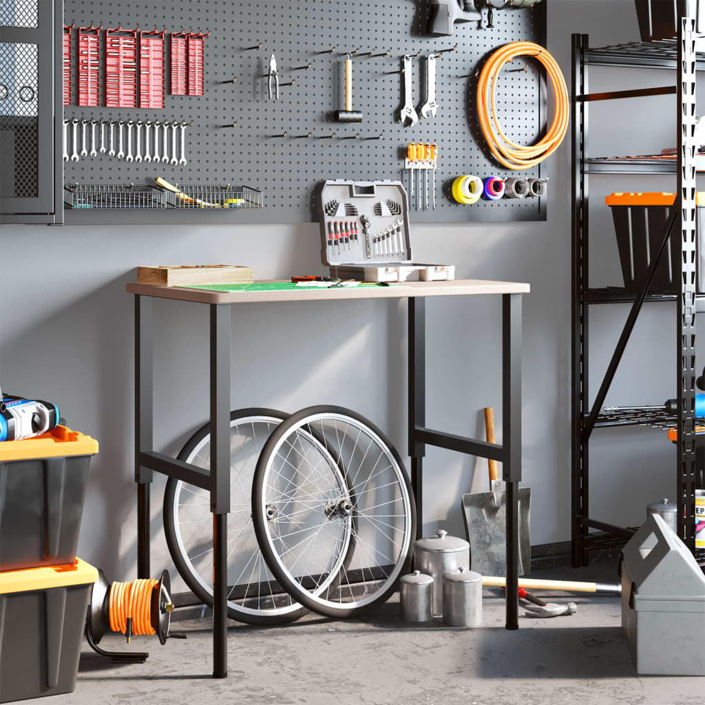 Die Werkbank ist ein großartiger Helfer, wenn du Reparaturarbeiten erledigen oder deine Heimwerker-Träume erfüllen möchtest! Robustes und langlebiges Material: Massives Eichenholz ist für seine Festigkeit, Haltbarkeit und schöne Maserung bekannt, weshalb es sich hervorragend für haltbare Möbel eignet. Durch seine natürliche Beständigkeit gegen Insektenbefall und Schimmelbildung sehen Eichenmöbel selbst nach jahrelangem Gebrauch brandneu aus.Stabiles und haltbares Gestell: Aus pulverbeschichtetem Metall gefertigt, ist das Gestell robust, stabil, langlebig, korrosions- und witterungsbeständig und gewährleistet dadurch eine lange Lebensdauer.Großer Arbeitsbereich: Der Arbeitstisch verfügt über eine geräumige Arbeitsplatte, die Platz für Bohrer, Kabeltrommel und weiteres Werkzeugzubehör bietet.Vielseitig einsetzbar: Mit ihrem schlichten und klaren Design lässt sich die Werkbank je nach Bedarf auch als Arbeitstisch verwenden. Sie ist daher ein praktisches und bequemes Möbelstück.Höhenverstellbare Beine: Die Beine lassen sich in der Höhe verstellen, um die Werkbank stets an deine Bedürfnisse anzupassen. Gut zu wissen:Jedes Stück ist ein Unikat, das in Farbe und Maserung variiert. Die Lieferung erfolgt in zufälliger Reihenfolge, wodurch die Exklusivität und Individualität deines Produkts gewährleistet wird. Achtung:Die Tischplatte ist mit keinen vorgebohrten Löchern versehen und Schrauben sind nicht im Lieferumfang enthalten. Daher müssen die Löcher gebohrt und die Schrauben vor dem Zusammenbau dieses Arbeitstisches erworben werden.