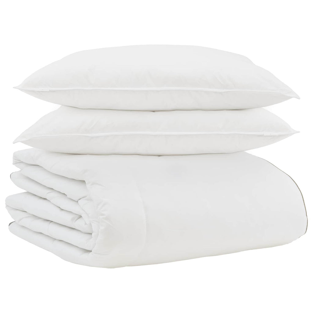 Dieses moderne Bettwäsche-Set steigert den Schlafkomfort mit seinem eleganten, minimalistischen Design und der hochwertigen Verarbeitung. Es passt in jedes Schlafzimmer und sorgt mit seiner glatten Textur für ein einladendes Ambiente, ideal zum Entspannen in der kalten Jahreszeit. Premium-Materialien: Dieses Set bringt die besten Eigenschaften von Mikrofaser und Baumwolle zusammen – für ein luxuriöses, angenehmes Gefühl. Die atmungsaktiven Baumwollfasern sorgen für Komfort, während die Mikrofaser zusätzliche Weichheit bietet, die dich warm umhüllt, ohne schwer zu sein. Enthält Essentials: Im Set sind 1 Decke und 2 Kissen enthalten. Die Decke hat ein schickes Kastensteppdesign, das die Daunenfüllung an Ort und Stelle hält und kalte Stellen vermeidet. Die Kissen sind aus Baumwolle und mit Daunen gefüllt, damit du bequem schlafen kannst. Vereinfachte Merkmale: Der minimalistische Stil mit klaren Linien und feinen Details sorgt für einen modernen Look, der jede Schlafzimmerdekoration ergänzt, ohne überladen zu wirken. Ideal für alle, die Eleganz schätzen. Vielseitige Verwendung: Hauptsächlich für das Schlafzimmer gedacht, bietet dieses Set an kalten Winternächten Gemütlichkeit. Es passt wunderbar in moderne Räume, ist aber auch vielseitig genug für verschiedene Einrichtungsstile und spricht alle an, die Stil und praktische Funktionen schätzen. Einfache Pflege: Die Pflege des Bettwäsche-Sets ist dank des maschinenwaschbaren Designs kinderleicht. Waschbar bis 40°C bleibt es frisch mit minimalem Aufwand, erhält seine Qualität und verlängert die Lebensdauer, was Zeit und Mühe spart.