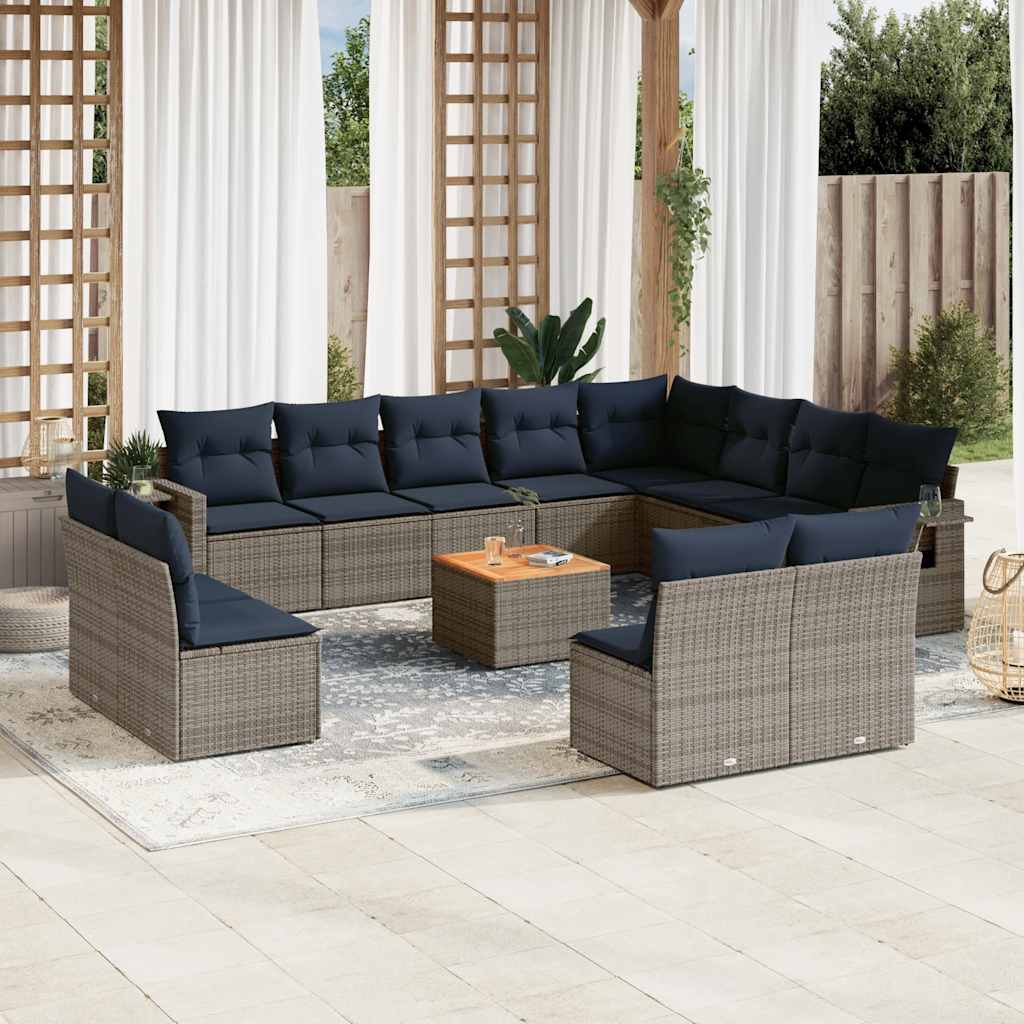 Dieses Gartensofa-Set ist die perfekte Ergänzung für Ihren Garten, Ihre Terrasse oder Ihren Innenhof und bietet einen komfortablen und einladenden Platz zum Plaudern mit Familie und Freunden oder einfach zum Entspannen und Genießen der Natur. Langlebiges Material: PE-Rattan, auch bekannt als Polyrattan, ist ein starkes, pflegeleichtes synthetisches Material, das wie natürliches Rattan aussieht. Es ist leicht, einfach zu reinigen und wird aufgrund seiner Langlebigkeit und Wetterbeständigkeit häufig für Gartenmöbel verwendet.Praktischer Beistelltisch: Dieses Gartenmöbelset verfügt über einen klappbaren Beistelltisch mit Gasdruckfeder an den Armlehnen, der einen praktischen Platz bietet, um Ihre wichtigsten Utensilien griffbereit zu haben.Stabile und leicht zu reinigende Tischplatte: Dieser Gartentisch hat eine Tischplatte aus Akazienholz, die robust, langlebig und leicht mit einem feuchten Tuch zu reinigen ist.Abnehmbarer und waschbarer Bezug: Diese Sitzkissen verfügen über abnehmbare Bezüge für einfaches Waschen und Pflegen.Modulares Design: Dieses Gartenmöbelset ist modular aufgebaut und daher völlig flexibel und leicht zu bewegen, sodass Sie Ihre Gartenmöbel individuell zusammenstellen können. Gut zu wissen:Damit Ihre Gartenmöbel schön bleiben, empfehlen wir Ihnen, sie mit einer wasserdichten Abdeckung zu schützen.