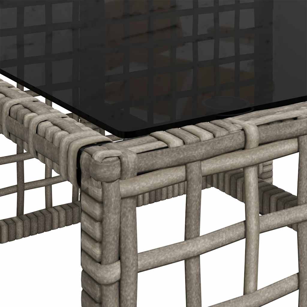 - Material: PE-Rattan, pulverbeschichteter Stahl, gehärtetes Glas