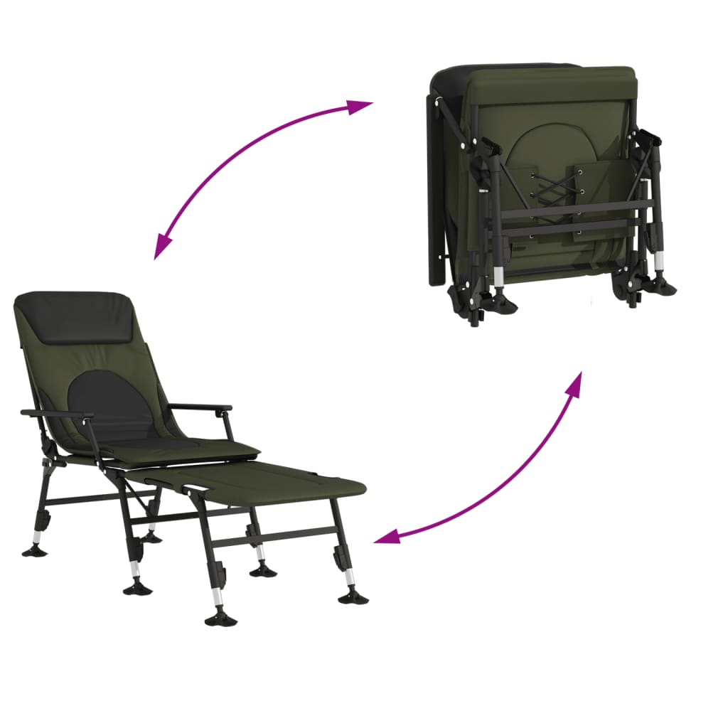 Diese klappbare Angelliege weist ein optisch ansprechendes und praktisches Design auf und eignet sich daher ideal für verschiedene Aktivitäten im Innen- und Außenbereich. Langlebig und robust: Die Angelliege besteht aus Stahl mit Pulverbeschichtung und ist daher robust und auf eine lange Lebensdauer ausgelegt.Praktisches Design: Die verstellbaren Beine der Liege sind mit Schlammkappen ausgestattet, die eine bequeme Nutzung selbst auf unebenem Gelände gewährleisten und das Einsinken in weichen Boden verhindern. Zudem lässt sich das Fußteil abnehmen und als separater Angelhocker verwenden.Bequem und praktisch: Die Fischerliege ist mit einer Schaumstoffpolsterung ausgestattet, die gut isoliert, sich leicht reinigen lässt und gleichzeitig Sitzkomfort bietet. Zudem lässt sich die Rückenlehne von 0 bis 180 Grad verstellen, wodurch Rücken und Oberschenkel entlastet werden, um eine bequeme Sitz- oder Liegeposition den ganzen Tag über zu genießen.Vielseitig einsetzbar: Dieses Angelbett lässt sich zusammenklappen und daher leicht verstauen und transportieren, was es zu einer idealen Wahl für Angeln, Campen oder andere Aktivitäten im Freien macht.