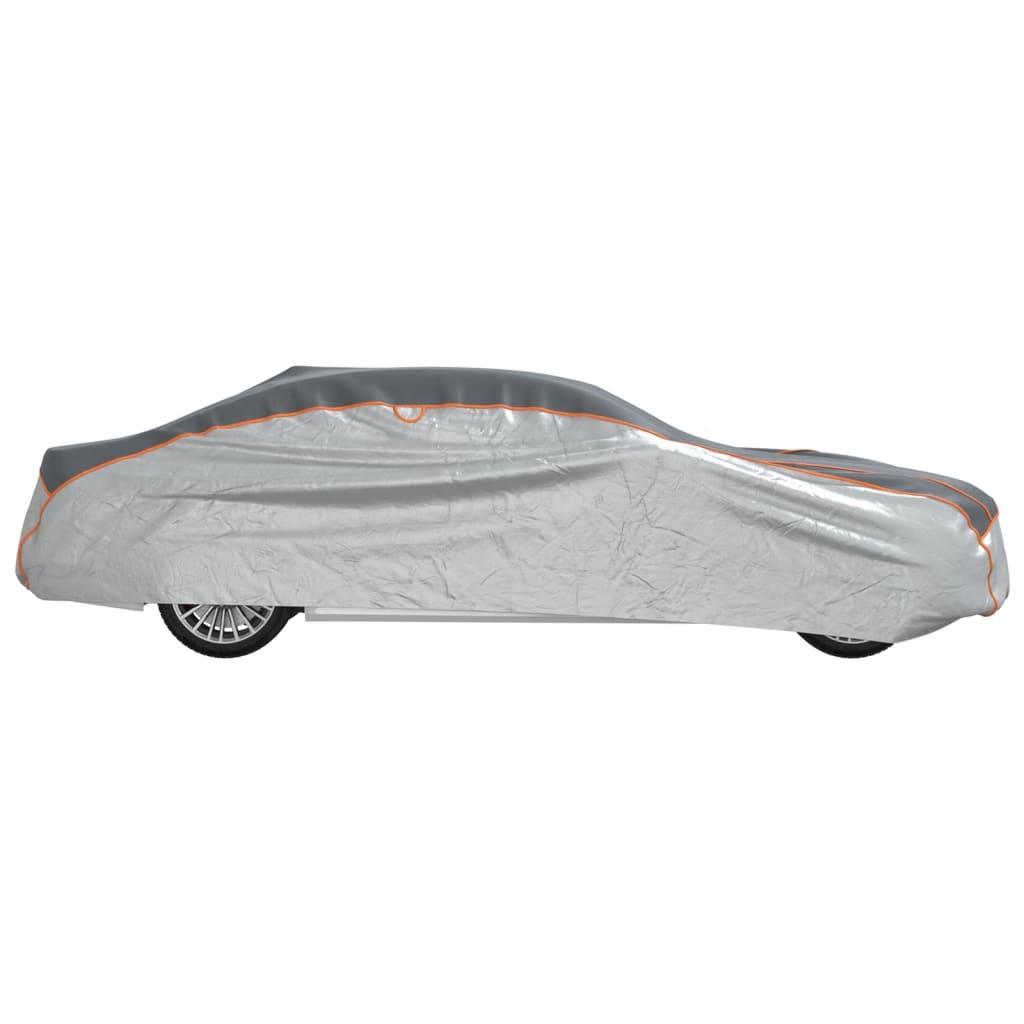 Diese Autoabdeckung für Limousinen schützt dein Fahrzeug vor UV-Strahlen, Kratzern, Hagel, Schnee, Regen, Frost, Staub, Laub, industrieller Verschmutzung und Vogelkot und eignet sich ideal für den Innen- und Außenbereich. Zuverlässiger Hagelschutz: Die Autoabdeckung ist mit einer 4 mm dicke EVA-Schaumschicht versehen, die den Aufprall von Hagel effektiv absorbiert. Selbst bei extremen Hagelstürmen schützt die Plane die Windschutzscheibe vor Rissbildungen, schirmt schwere Stöße ab und sorgt für Sorgenfreiheit.Gut sichtbarer Reflektor: Diese Autoplane verfügt über einen Reflektor auf der Rückseite, der die Sichtbarkeit nachts erhöht und das Unfallrisiko verringert.Gute Belüftung: Die Belüftungsöffnungen fördern eine optimale Belüftung unter der Autoabdeckung und verhindern Feuchtigkeitsbildung, und eine atmungsaktive Umgebung zu erhalten.Winddichtes Design: Die elastischen Kanten der Hülle sorgen für eine feste Passform, während die verstellbaren Gurte mit Schnallen an der Unterseite das Wegblasen der Plane an windigen Tagen vermeiden.Einfache Lagerung: Diese Autoschutzhülle wird samt einer praktischen Aufbewahrungstasche geliefert, in der sie sich bei Nichtgebrauch leicht verstauen lässt. Gut zu wissen:Bitte nimm vor dem Erwerb genaue Messungen deines Autos vor, um sicherzustellen, dass du die richtige Größe auswählst.