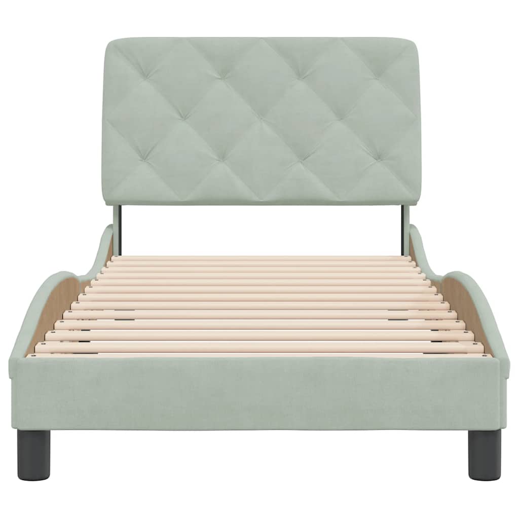 Mit diesem Bettgestell mit Kopfteil genießt du einen besseren, erholsameren Schlaf! Es ist eine angenehme Bereicherung für jedes Schlafzimmer. Weicher Samt: Samt ist ein weicher und bequemer Stoff, der sich angenehm auf der Haut anfühlt.Sperrholzlatten: Die Sperrholzlatten sorgen für eine gute Gewichtsverteilung und auch dafür, dass die Matratze bei jeder Bewegung deines Körpers während des Schlafes an Ort und Stelle bleibt.Ausgezeichnete Unterstützung: Das Kopfteil-Kissen ist mit Schaumstoff gefüllt und fühlt sich daher extra weich und komfortabel an. Es bietet eine ausgezeichnete Rückenunterstützung beim Sitzen im Bett oder Fernsehen.Praktisches Design: Das Kopfteil mit Kissen hat einen Reißverschluss für eine einfache Montage. Die Klettverschlüsse auf der Rückseite können zur Befestigung von LED-Leisten verwendet werden.Wellenförmiges Seitendesign: Das stilvolle und raffinierte Design in Wellenform verleiht deiner Einrichtung eine moderne und elegante Note und macht das Bettgestell zum Mittelpunkt deines Schlafzimmers. Gut zu wissen:Bei diesem Bett ist keine Matratze im Lieferumfang enthalten. Wir bieten jedoch eine große Auswahl an Matratzen an. Du kannst in unserem Shop nach einer passenden Matratze suchen.