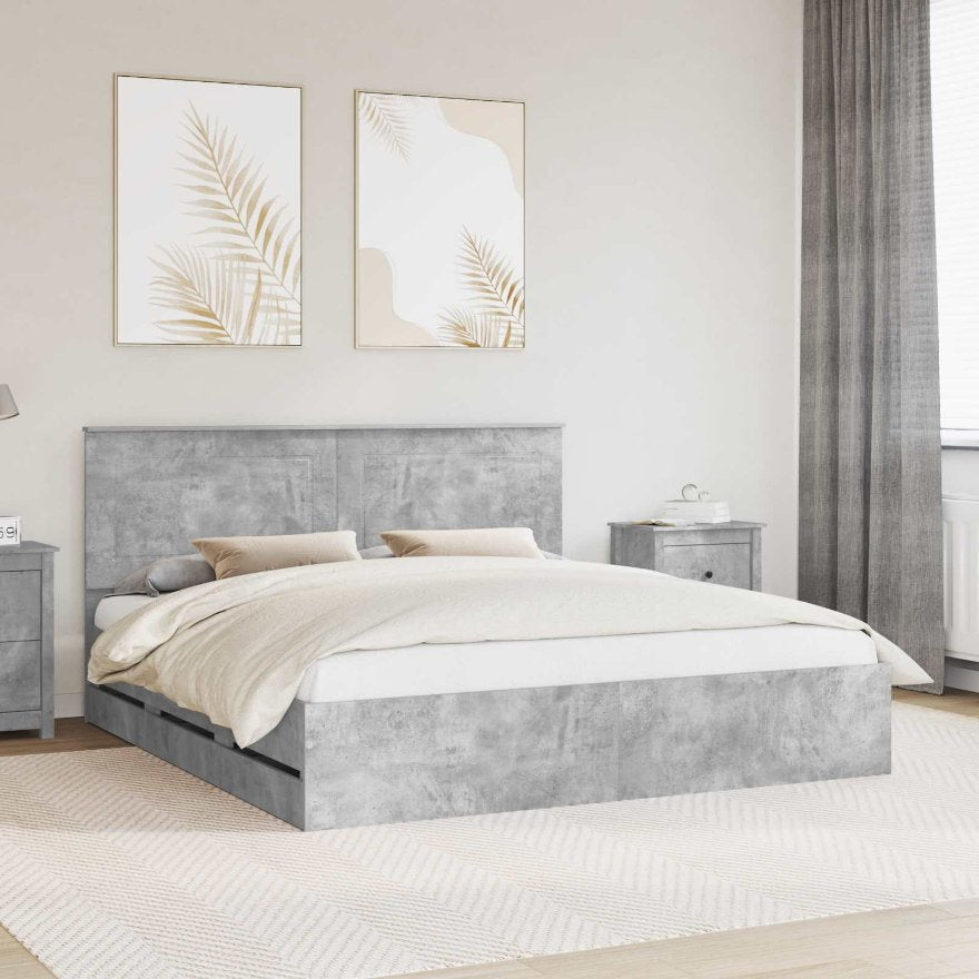 Dieses moderne Bettgestell ist eine schicke und stylische Ergänzung für jedes Schlafzimmer. Mit klaren, modernen Linien und aus strapazierfähigem, konstruiertem Holz gefertigt, vereint es Einfachheit und Eleganz für zeitgemäße Innenräume. Konstruierter Holzaufbau: Das Bettgestell ist komplett aus haltbarem, konstruiertem Holz gefertigt, was es sehr widerstandsfähig gegen Abnutzung macht. So behält es über die Jahre sein frisches Aussehen und bietet stabile Unterstützung für Ihre Matratze. Diskrete Stauraummöglichkeiten: Versteckte Schubladen bieten viel Platz für Ihre Sachen, ohne die klaren Linien des Bettes zu stören. Diese Fächer sind perfekt, um Ordnung zu halten und einen minimalistischen Look zu kreieren. Modernes, klares Design: Mit quadratischen Beinen und einem stabilen lattenförmigen Rahmen bringt das Bett eine moderne Note in Ihr Zimmer und harmoniert wunderbar mit verschiedenen Dekoren. Montage und Einrichtung: Dieses Bett kommt mit allem, was Sie für eine einfache Montage brauchen. Nur ein Schraubendreher ist nötig, und mit etwas Hilfe kann man schnell eine stabile Schlafbasis aufbauen. Einfache Pflegeempfehlungen: Das Bett lässt sich ganz einfach sauber halten. Ein feuchtes Tuch reicht, damit es frisch aussieht und in gutem Zustand bleibt.