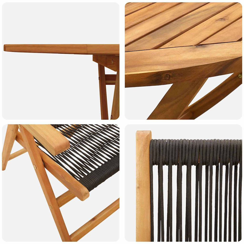 Das Rustikale Garten Esszimmer Set verbindet Stil mit praktischer Funktionalität und ist ein echtes Highlight für Gartenliebhaber und Outdoor-Fans, die sowohl auf einen tollen Look als auch auf praktische Aspekte Wert legen. Dieses moderne Set mit seinem hübschen Braun sorgt für rustikalen Charme und passt perfekt auf Terrassen und Balkonen. Mache deine Gartenpartys unvergesslich mit diesem ansprechenden Esszimmer Set, das sowohl vielseitig als auch robust ist. Massives Akazienholz: Das Hauptmaterial dieses Sets ist Akazienholz – stark und perfekt für draußen. Dank seiner wetterfesten Eigenschaften hält es den Elementen stand und bleibt dabei schön. So hast du lange Freude daran. Vollständiges Ess-Erlebnis: Das Set kommt mit einem großen Tisch und bequemen Stühlen – ideal für gemütliche Dinner mit Familie und Freunden. Die geräumige Tischplatte ist perfekt für alles, von einem schnellen Snack bis zu feierlichen Abendessen und wird zum Mittelpunkt deiner Feiern im Freien. Vorteile der geölten Oberfläche: Die geölte Oberfläche schützt das Holz und behält seine natürliche Farbe bei. Das macht das Set hübsch und minimiert gleichzeitig den Pflegeaufwand – so bleibt alles stylisch und pflegeleicht. Praktische abnehmbare Kissen: Die Stühle mit abnehmbaren Kissen bieten dir flexiblen Komfort und sind schnell zu waschen. So bleibt alles frisch und sauber mit wenig Aufwand – das sorgt für zufriedene Nutzer. Einfache Montage: Das Set ist so konzipiert, dass es mit nur zwei Personen und einem Schraubendreher flott zusammengebaut werden kann. Ein praktischer Ansatz, der es einfach macht und dir Zeit und Mühe spart.