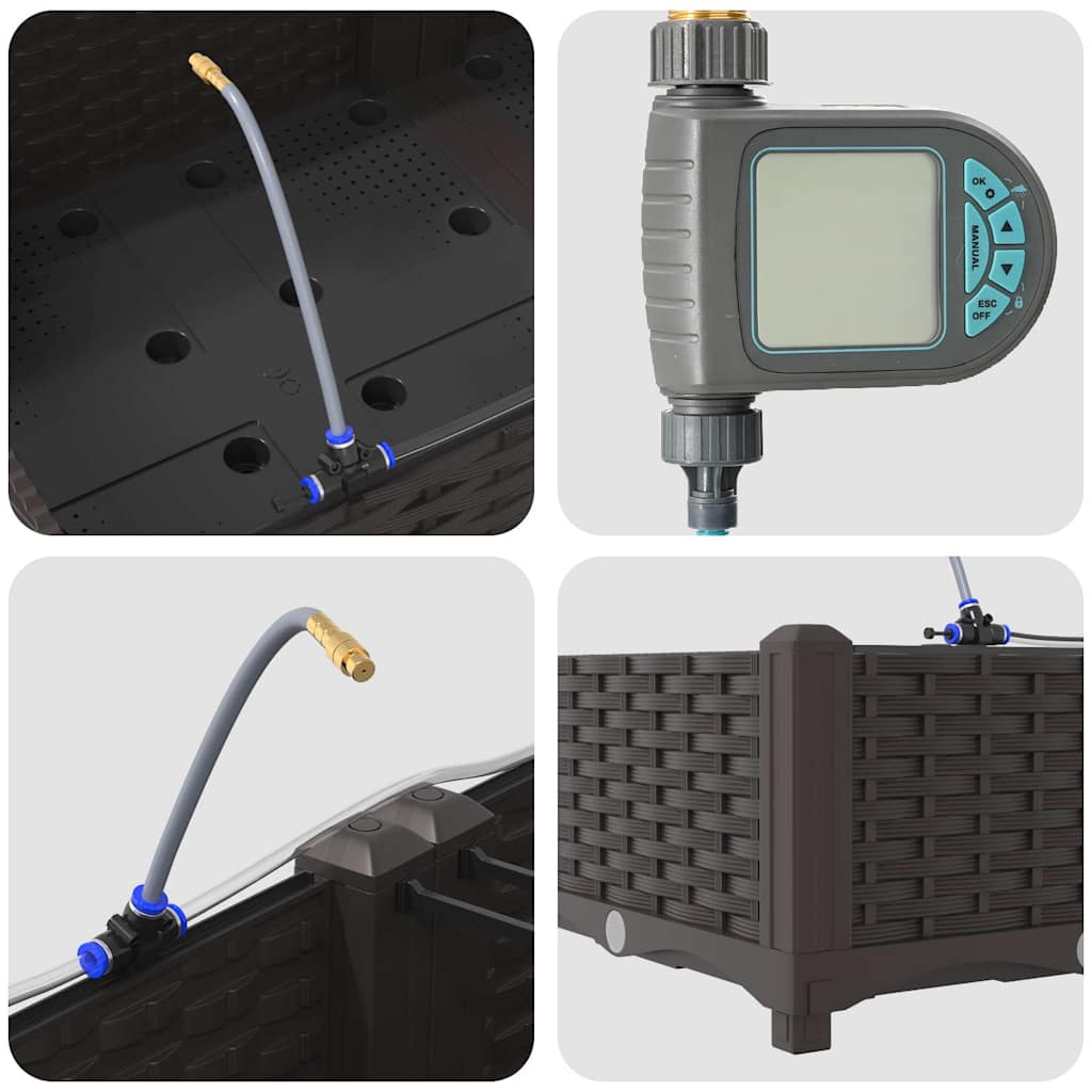 Der Gartenpflanzer mit Bewässerung ist perfekt für alle, die etwas Praktisches und trotzdem Schickes für ihren Außenbereich suchen. Mit seinem modernen, simplen Design fügt sich dieser Pflanzer locker in jede Garten- oder Terrasseneinrichtung ein. Er legt den Fokus auf Einfachheit und Funktionalität und bringt einen Hauch von Eleganz in deine Pflanzenarrangements. Egal, ob du ein erfahrener Gärtner oder Anfänger bist, dieser Pflanzer verbindet Style mit Funktion. Stahlkonstruktion: Aus stabilem Stahl gebaut, bietet dieser Gartenpflanzer top Robustheit für langfristigen Einsatz im Freien. Seine solide Bauweise sorgt für Widerstandsfähigkeit gegen die Witterung und sieht auch nach schlechtem Wetter noch gut aus. So kannst du dich jahrelang auf ihn verlassen und er wird ein zeitloser Teil deiner Garteneinrichtung. Mühelose Montage: Der Pflanzer ist so konzipiert, dass du ihn ganz einfach aufbauen kannst. Du brauchst nur einen Schraubendreher und eine Person, was den Aufbau zum Kinderspiel macht. So kannst du dich voll auf das Anordnen deiner Pflanzen konzentrieren. Modernes Design: Mit seinen klaren Kanten und dem minimalistischen Look passt er perfekt in moderne Außenräume. Der Pflanzer bringt Style in deinen Garten und sieht richtig schick aus. Seine schlichte Eleganz fügt sich gut in verschiedene Einrichtungsmuster ein. Bewässerungsbereit: Dieser Pflanzer sorgt dafür, dass deine Pflanzen optimal mit Wasser versorgt werden. Das Wassermanagement ist super einfach, so dass deine Pflanzen immer die nötige Feuchtigkeit bekommen. Diese Funktion ist besonders praktisch, wenn du mal trockenere Zeiten oder längere Abwesenheiten hast. Effektive Nutzungstipps: Für die besten Ergebnisse, stelle sicher, dass der Pflanzer auf einer stabilen Fläche steht. Halte die Montageanleitung ein, um gute Verbindungen zu garantieren. So sorgst du für Stabilität und Langlebigkeit, was ihn zu einem unverzichtbaren Garten-Accessoire macht.