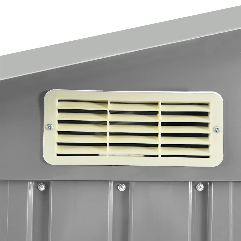 Dieser Garten-Lagerschuppen mit Regal ist ideal für die Unterbringung einer Vielzahl von Werkzeugen, Gartenmöbeln und Gartengeräten. Der Geräteschuppen bietet nicht nur Schutz vor Schmutz und Staub, sondern auch vor Wind und Wetter. Dieses Gartenhaus besteht aus verzinktem Eisen und ist daher stabil und pflegeleicht. Der Gartenschuppen hat vorne und hinten Lüftungsschlitze, die für eine hervorragende Belüftung sorgen. Die einzelne Schiebetür mit Kunststoff-Türgriff vorne ermöglicht einen einfachen Ein- und Ausstieg. Dieser Gartenschuppen ist auch einfach zu montieren.