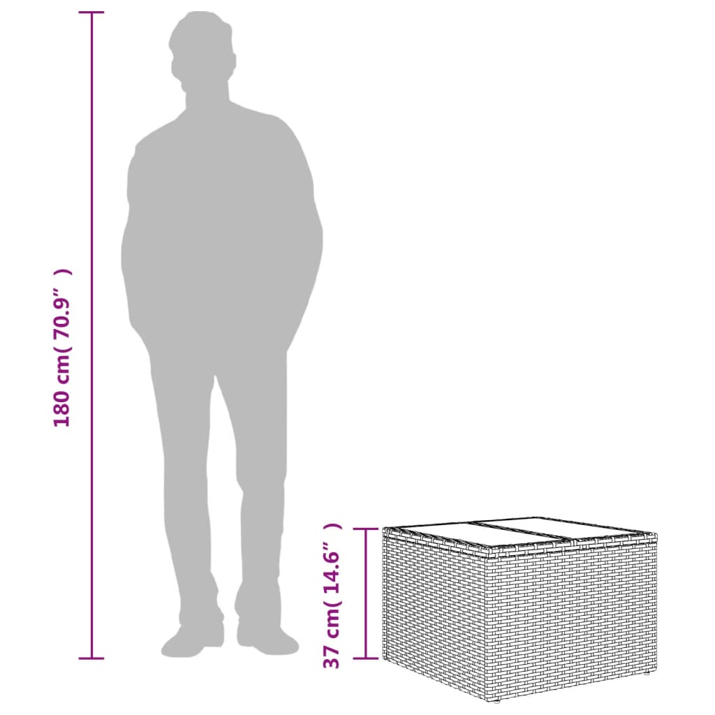 Versammeln Sie sich um diesen Gartentisch, um eine Tasse Kaffee zu genießen oder sich mit Ihrer Familie und Freunden im Garten, Hinterhof oder auf der Terrasse zu unterhalten! Langlebiges Material: PE-Rattan, auch bekannt als Polyrattan, ist ein robustes, pflegeleichtes Kunststoffmaterial, das wie natürliches Rattan aussieht. Es ist leicht, einfach zu reinigen und wird aufgrund seiner Langlebigkeit und Wetterbeständigkeit häufig für Gartenmöbel verwendet.Glastischplatte: Die Tischplatte des Gartentisches besteht aus robustem und langlebigem Hartglas. Dadurch lässt sie sich leicht mit einem feuchten Tuch reinigen und verleiht Ihrem Außenbereich einen Hauch von Eleganz.Robuster und stabiler Rahmen: Der pulverbeschichtete Stahlrahmen sorgt dafür, dass die Gartenmöbel robust und stabil für den täglichen Gebrauch im Freien sind. Gut zu wissen:Damit Ihre Gartenmöbel lange schön bleiben, empfehlen wir Ihnen, sie mit einer wasserdichten Abdeckung zu schützen.