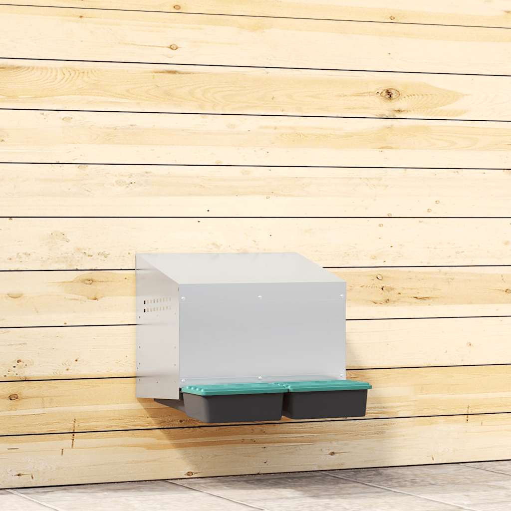 Verbessern Sie Ihre Geflügelhaltung mit dem Hühnernistkasten und bieten Sie Ihren Hühnern einen privaten, komfortablen Legebereich. Robustes und langlebiges Material: Dieser aus verzinktem Stahl und robustem Polypropylen-Kunststoff gefertigte Nistkasten ist auf Langlebigkeit ausgelegt und bietet Ihren Hühnern lang anhaltende Leistung und Schutz vor rauen Außenbedingungen.Bequemes Eiersammeln: Der leicht anzuhebende Deckel und das ausrollbare Design ermöglichen ein müheloses Eiersammeln, ohne dass die Hühner gestört werden. Das durchdachte Design schafft eine ruhige Umgebung für Ihre Hühner und macht das Eiersammeln reibungslos, problemlos und pflegeleicht.Mühelose Installation: Der Nistkasten mit offener Vorderseite, die sich nahtlos in Wandausschnitte integriert, bietet Hühnern einfachen Zugang und sorgt gleichzeitig für eine ordentliche, platzsparende Anordnung. Ideal für Holzwände mit vorgefertigten Ausschnitten, gewährleistet es eine schnelle und sichere Montage mit minimalem Aufwand.Geschützter Legebereich für Hühner: Durch sein relativ geschlossenes Design animiert dieser Hühnernistkasten die Hennen zum bequemen Eierlegen und reduziert das Risiko, dass Eier außerhalb des Kastens abgelegt werden. Er bietet einen dunklen, sauberen Rückzugsort für ungestörtes Eierlegen – ein ideales Zubehör für jeden Hühnerstall oder Hühnerstall.Leicht zu reinigen: Die Ablage lässt sich zum Reinigen leicht herausnehmen, und die glatten Oberflächen sowohl der Ablage als auch des Kastens machen die Reinigung mühelos und sorgen für eine sauberere und hygienischere Umgebung für Ihre Hühner. Gut zu wissen:Um Kratzer zu vermeiden, wird empfohlen, während der Montage Handschuhe zu tragen.Das Produkt ist zur Montage an Holzwänden geeignet.