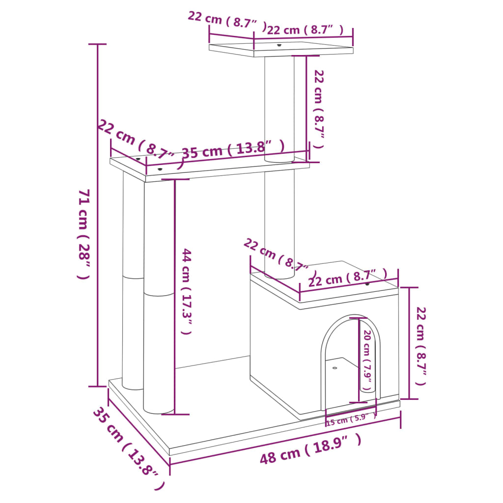 - Mit einem Haus, Kratzsäulen und Plattformen