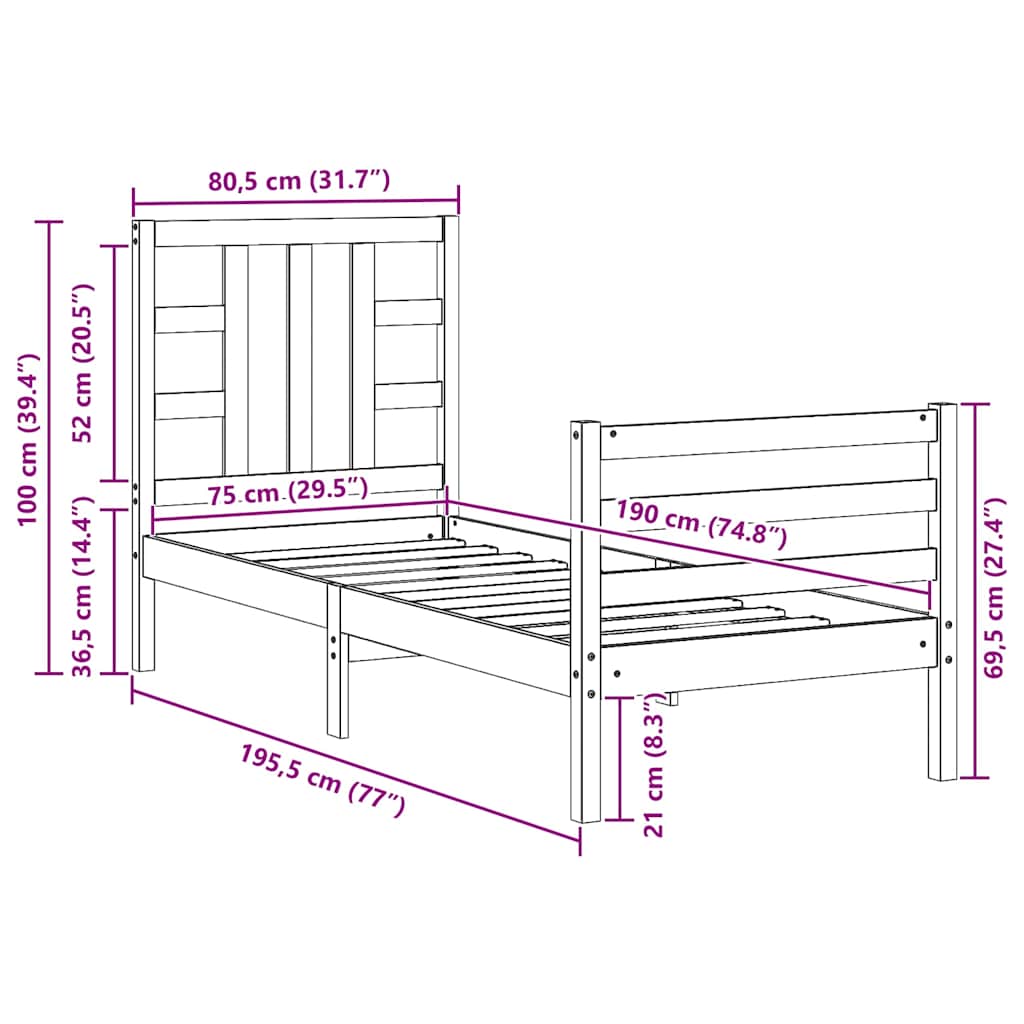 - Gesamtabmessungen des Bettes: 195,5 x 80,5 x 100 cm (L x B x H)
