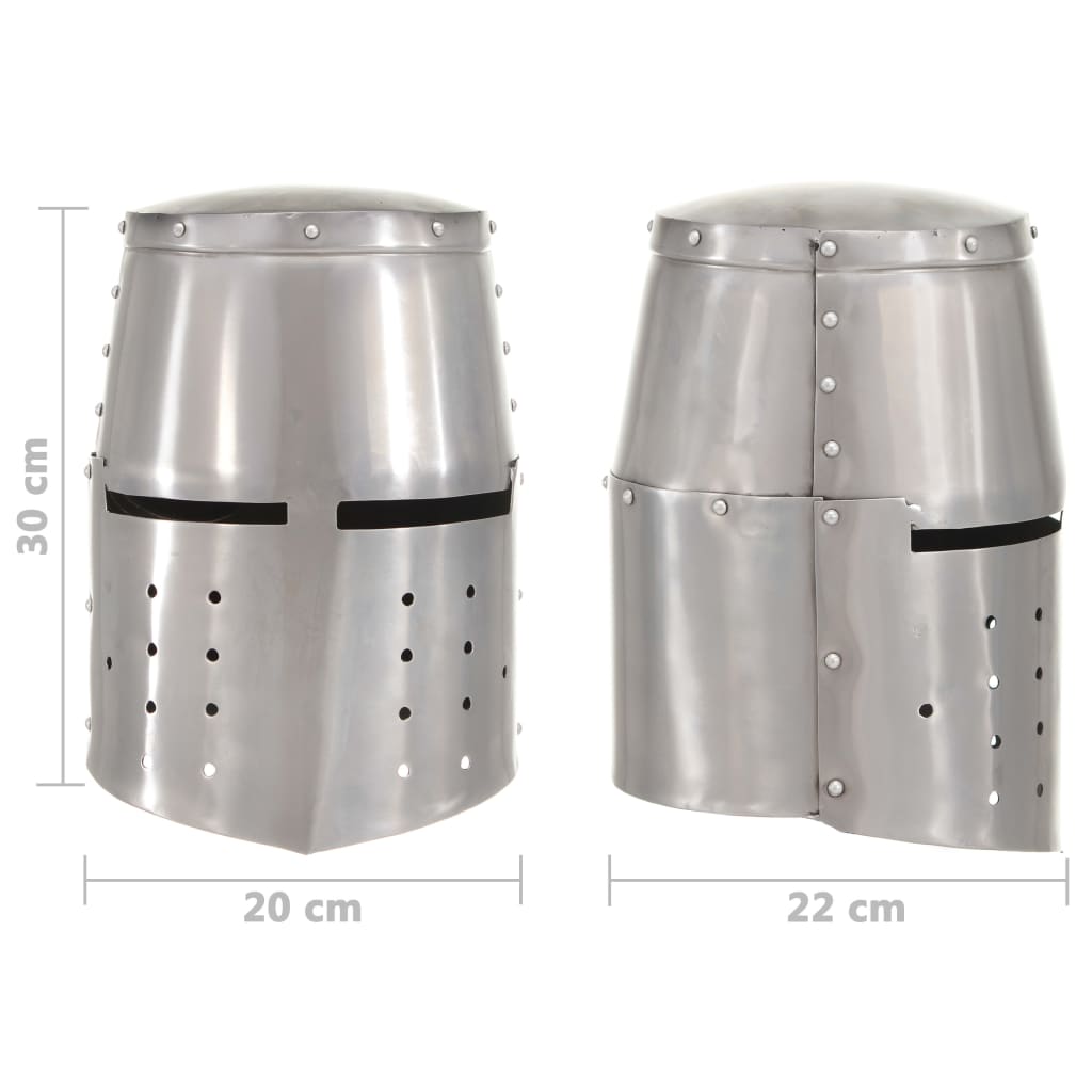 Dieser Topfhelm in Antik-Optik eignet sich hervorragend für LARP (Live-Action-Rollenspiel), Cosplay, Partys mit historischem Thema, Halloween-Party, Theaterrequisiten und historische Nachstellungen (Reenactments). Der Helm ist eine exakte Nachbildung eines original mittelalterlichen Ritterhelms. Gefertigt aus Stahl der Stärke 18, kombiniert er antiken Stil und robustes Material zu einem eindrucksvollen Helm, der perfekt zu Ihrer Rüstung passt. Dieser vollständig tragbare Ritterhelm bedeckt den Kopf und verfügt über kleine Öffnungen für eine gute Sicht und Belüftung, um besseren Schutz als herkömmliche Helme zu bieten. Darüber hinaus ist er auch ein attraktives Ausstellungsstück.