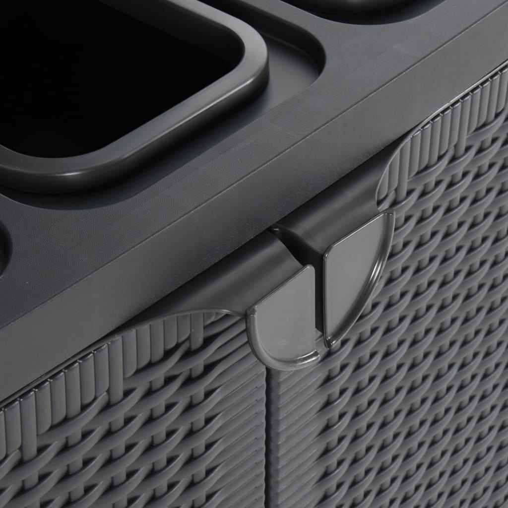 Dieser stilvolle und praktische Mülleimer ist ein Muss in Ihrer Küche, Ihrem Wohnzimmer, Büro usw. Aus 100 % PP (Polypropylen) gefertigt, ist dieser umweltfreundliche Schrank nicht nur langlebig, sondern lässt sich auch leicht mit einem feuchten Tuch reinigen. Dank seiner Leichtbauweise lässt er sich einfach umstellen. Zudem ermöglicht dieser Recyclingbehälter mit 3 Löchern für Beutelhalter eine funktionale Mülltrennung.