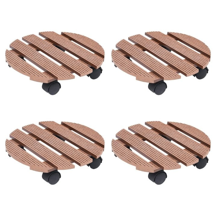 Bewegen Sie Ihre Pflanzen mühelos mit diesen praktischen Pflanzenrollern! Diese Blumentopf-Untersetzer mit Rollen bestehen aus Holz-Kunststoff-Verbundwerkstoff, wodurch sie langlebig, witterungsbeständig und für den Außenbereich geeignet sind. Dank der um 360° drehbaren Rollen können die Pflanzenroller mühelos bewegt werden. Es gibt auch Bremsen an zwei Rollen, damit Sie sie leicht arretieren können.