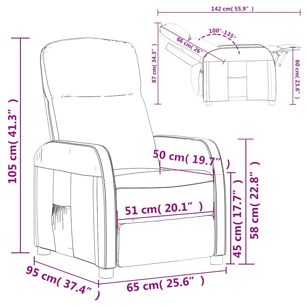 Lehne sich zurück und entspanne sich in diesem äußerst bequemen Relaxsessel! Manuelle Liegefunktion: Der Sessel kann manuell in 3 Positionen verstellt werden, so dass die Rückenlehne und der Fußteil je nach Bedarf eingestellt werden können.Bequemes Sitzerlebnis: Der dick gepolsterte Sitz, die Rückenlehne und die breiten, mit Kunstleder bezogenen Armlehnen sorgen für ein behagliches und angenehmes Sitzgefühl. Künstliches Leder ist ein äußerst langlebiges Material. Es ist schmutzabweisend und lässt sich mit einem feuchten Tuch einfach reinigen. Durch die glatte Oberfläche weist es die luxuriöse Schönheit von Echtleder auf.Solider und stabiler Rahmen: Der Rahmen aus Holz und Metall sorgt für eine solide Struktur und hohe Stabilität. Dieser TV-Sessel ist bequem und langlebig.