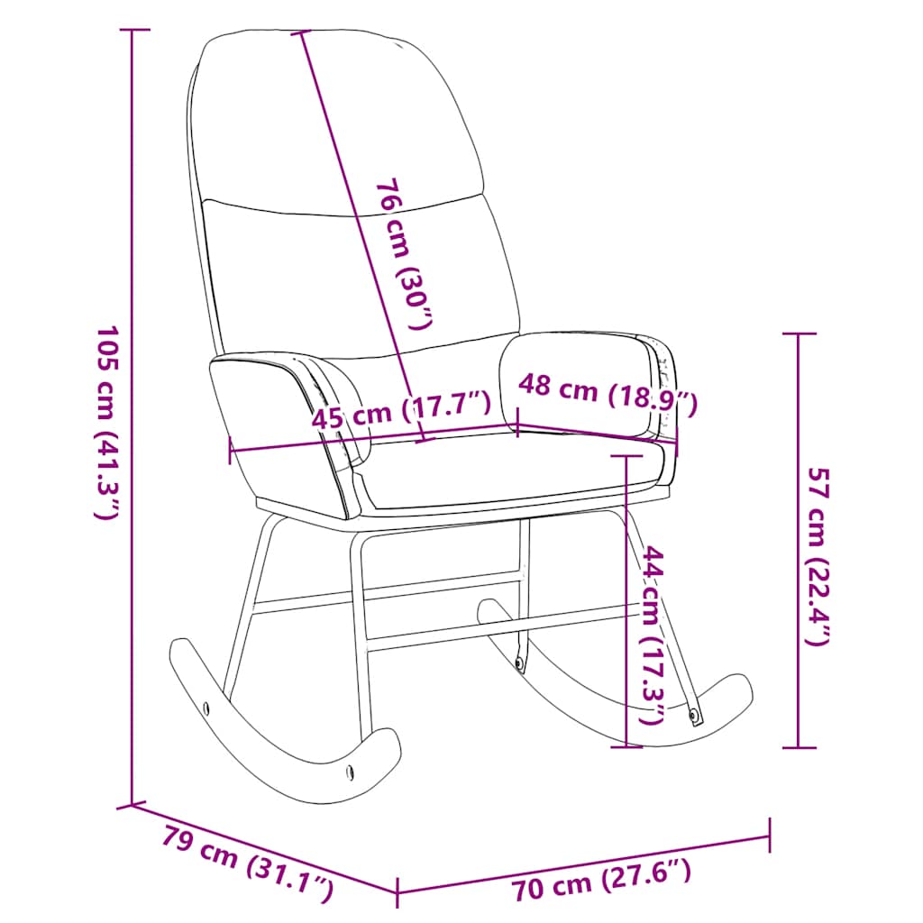 Auf der Suche nach einem Sessel, um dich nach einem anstrengenden Tag zu entspannen? Dann ist dieser komfortable Schaukelsessel genau das Richtige für dich! Weiches und komfortables Material: Der Samtstoff hat eine weiche und sanfte Oberfläche, die sich angenehm auf der Haut anfühlt und höchsten Komfort bietet.Komfortables Sitzerlebnis: Die weiche Polsterung des Sessels bietet ultimativen Komfort und Halt und sorgt so für ein angenehmes Sitzerlebnis.Vielseitig einsetzbar: Dieser Loungesessel ist eine vielseitige und stilvolle Ergänzung zu deinem Zuhause oder Büro. Der Sessel findet Platz neben dem Sofa und lässt sich zum Schaffen einer gemütlichen Sitzecke im Schlafzimmer oder Büro verwenden, wo er die Ästhetik deines Wohnraums sofort aufwertet.Sanfte und beruhigende Schaukelbewegung: Die sanfte Schaukelbewegung hat eine beruhigende Wirkung und hilft beim Entspannen.