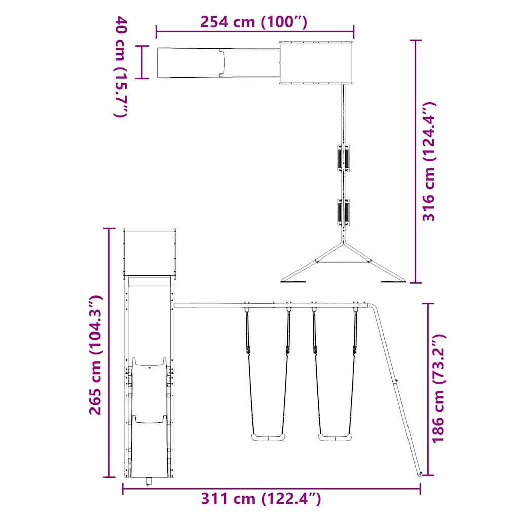 - Gesamtbreite der Rutsche: 40 cm