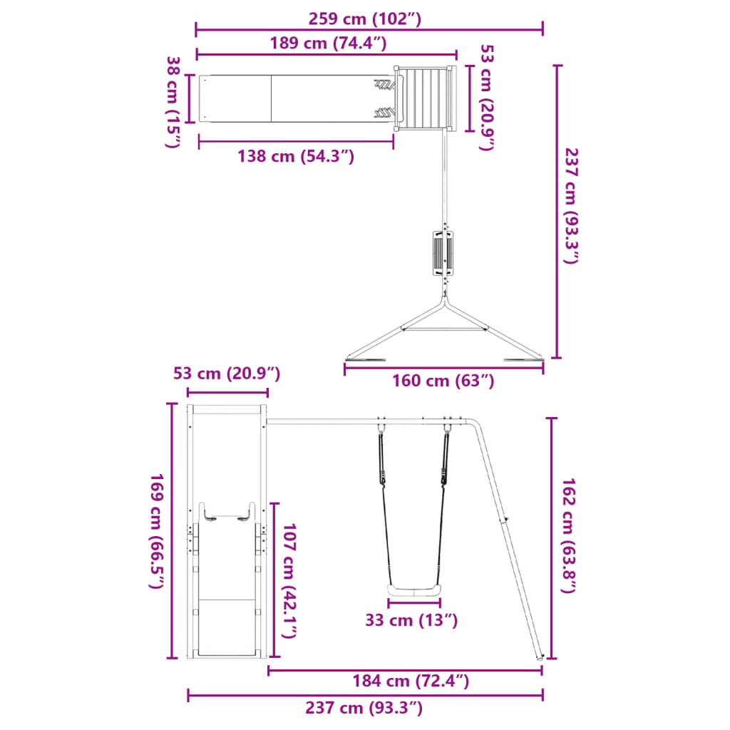 - Abmessungen der Schaukel: 33 x 22 x 112,5 cm (B x T x H)