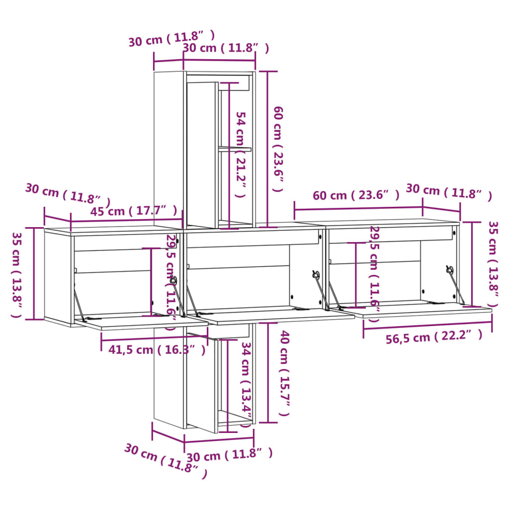 - 1 x TV-Schrank: 30 x 30 x 60 cm (B x T x H)